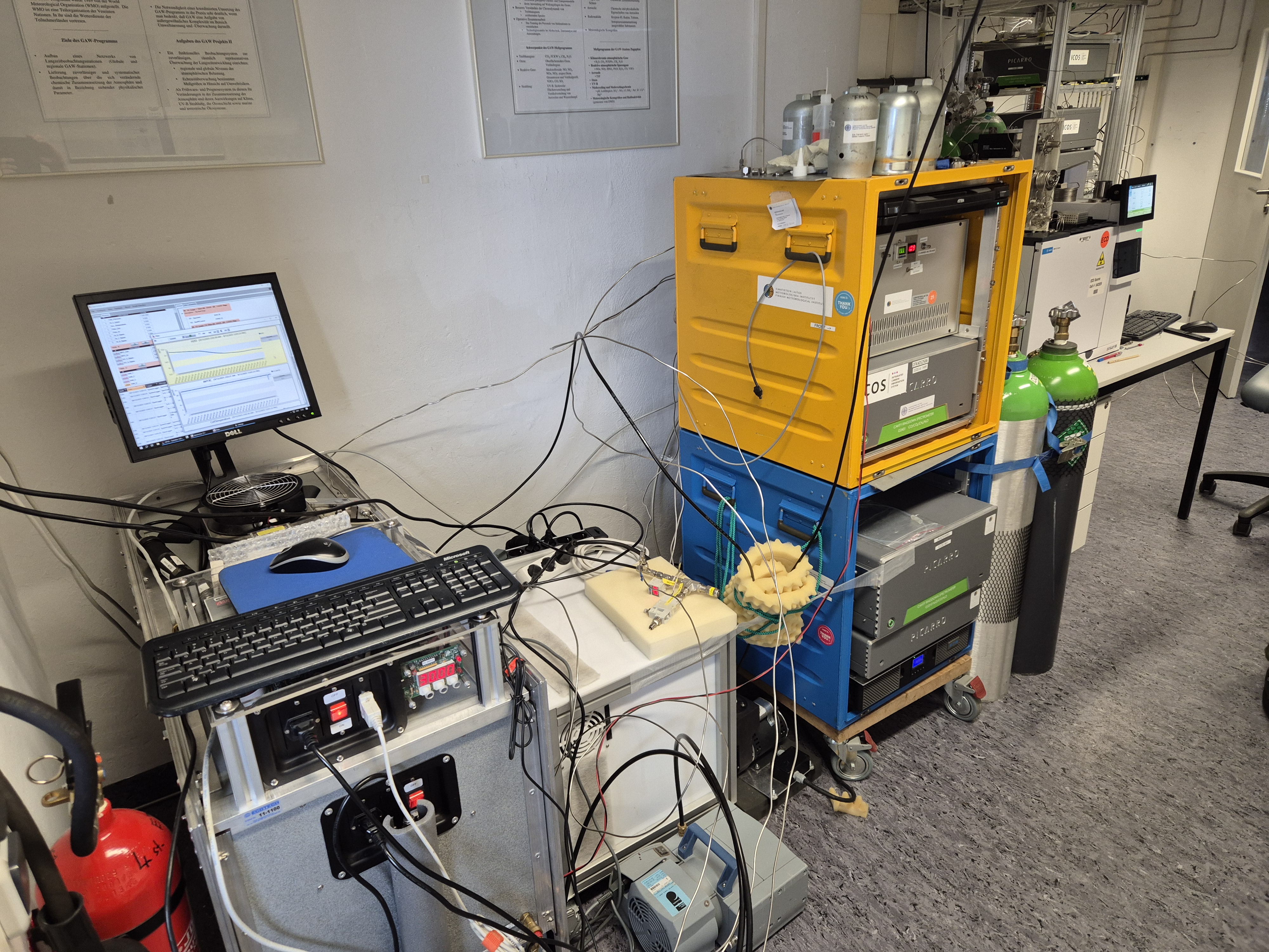The Mobile Lab has a van, which is equipped with state-of the-art analysers and standard gases, which are traceable to World Meteorological Organization Central Calibration Laboratoryand ICOS Central Analytical Laboratory. Atmospheric Station visit last approximately 2 months. During the visit standard gases of the station are cross-checked and parallel monitoring of ambient air are conducted to validate quality of the greenhouse gas monitoring of the station.