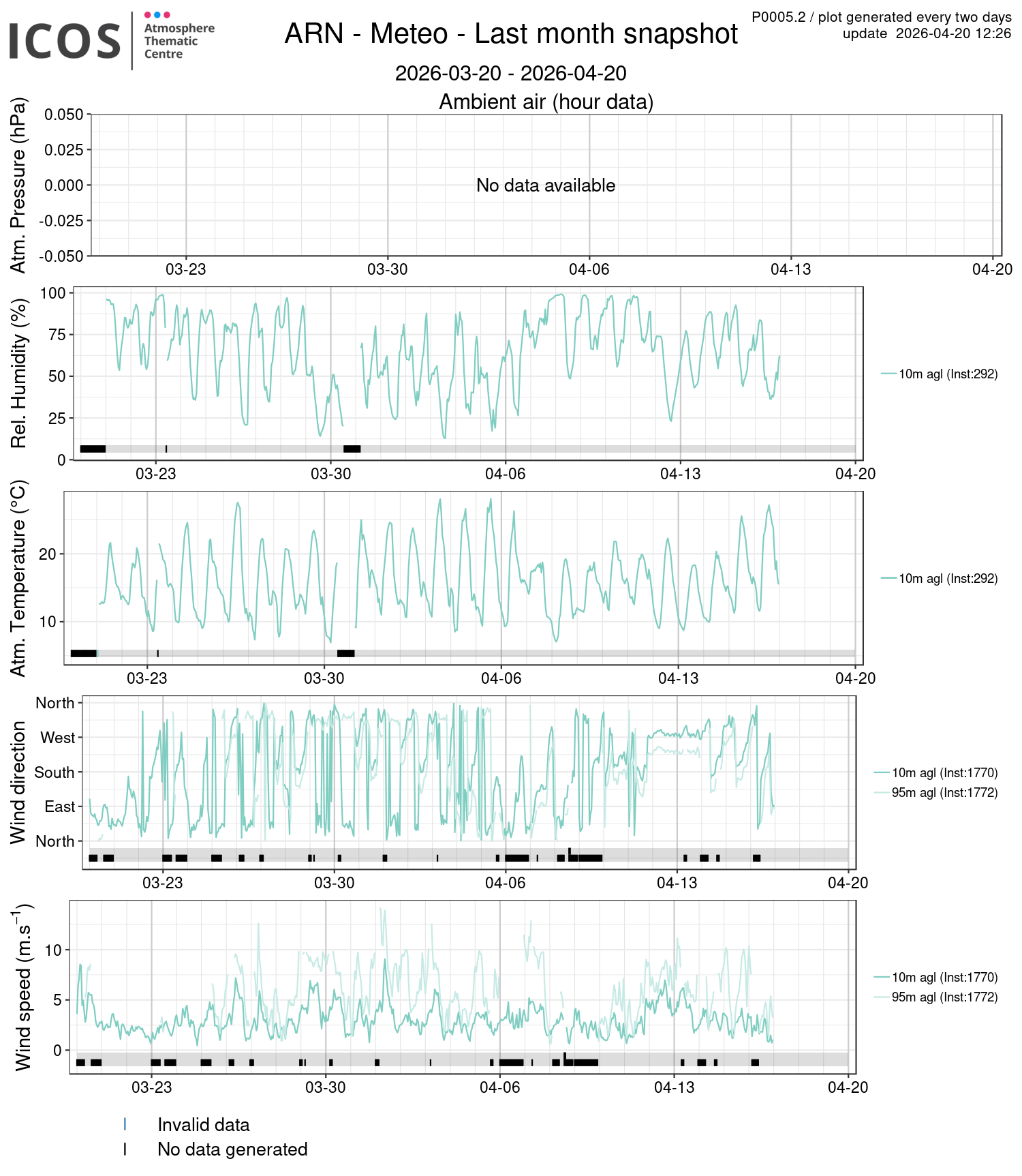 El Arenosillo is located in the DoƱana National Park in the south-west of the Iberian Peninsula, close to the Atlantic coastline (1 km). The nearest town is Mazagon, 9 km towards the WNW, with a population of 4000 inhabitants. The city of Huelva, with 145 thousand inhabitants is situated 26 km to the NW. Close to Huelva city there are an industrial complex with chemical and petrochemical activities. Seville metropolitan area is 75 km to the NE from the coastline of El Arenosillo; with a population of more than 1.5 million, it is the most densely populated urban area in the south of the Iberian Peninsula. The observatory can be affected by regional anthropogenic emissions, mainly from Seville area but also by emissions transported over medium-long ranges (for instance from the North of Africa or the Western Mediterranean Basin) to reach the Gulf of Cadiz.