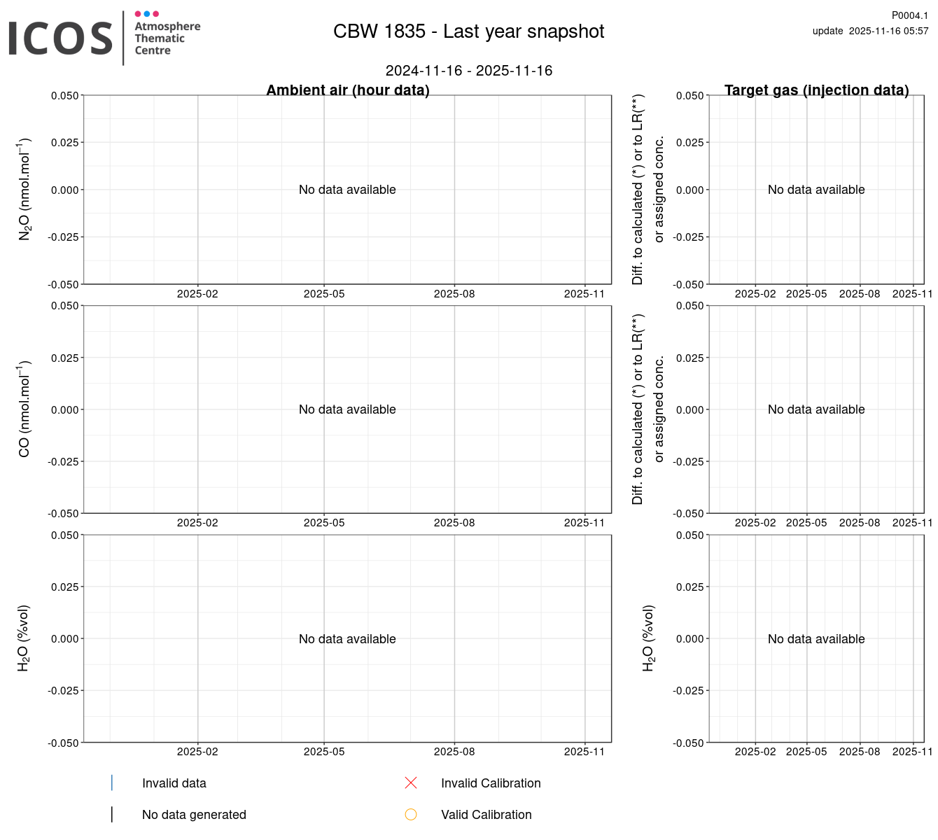 - Y-axis: For GHG species, the difference between the measured value and the calculated (if tank's legend is followed by a star "*") or assigned value is computed. For H2O, the absolute value is plotted.