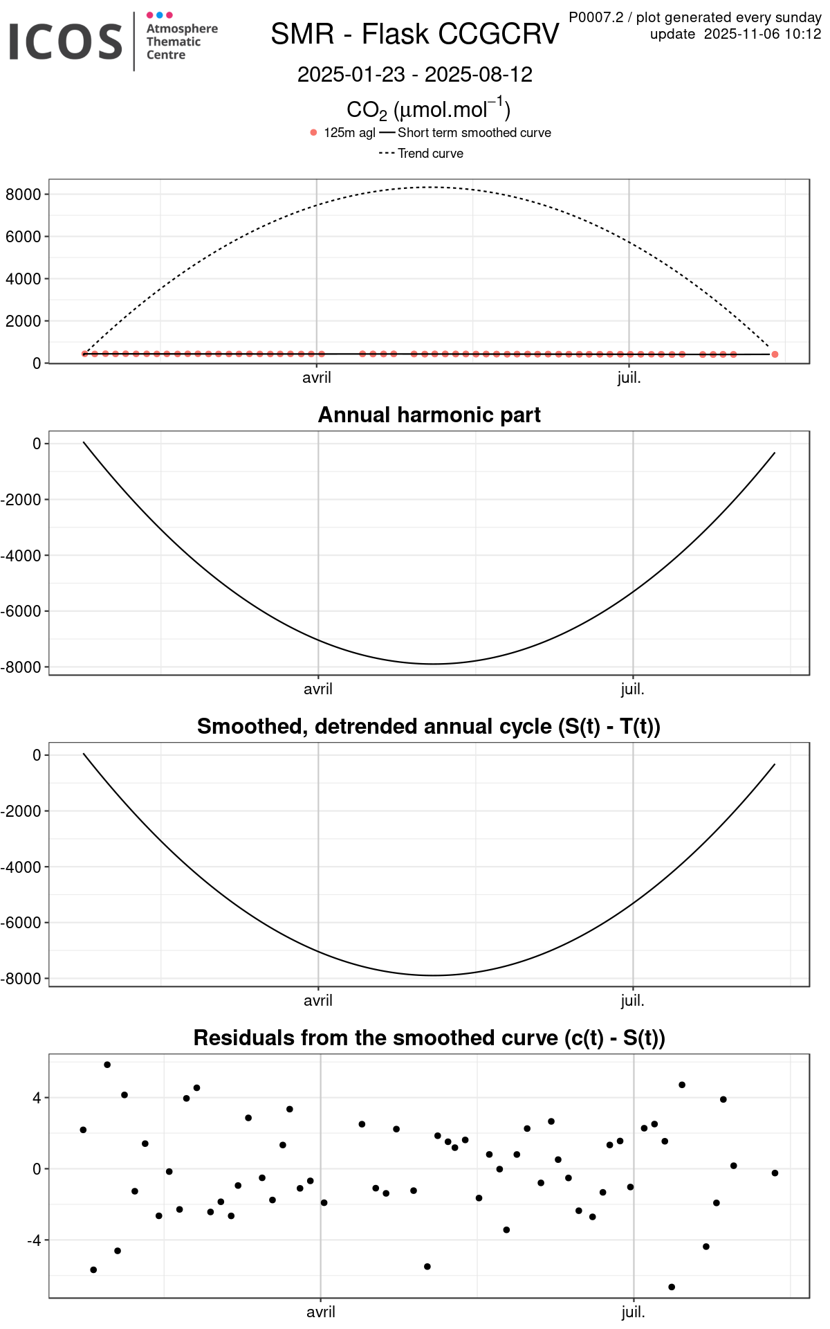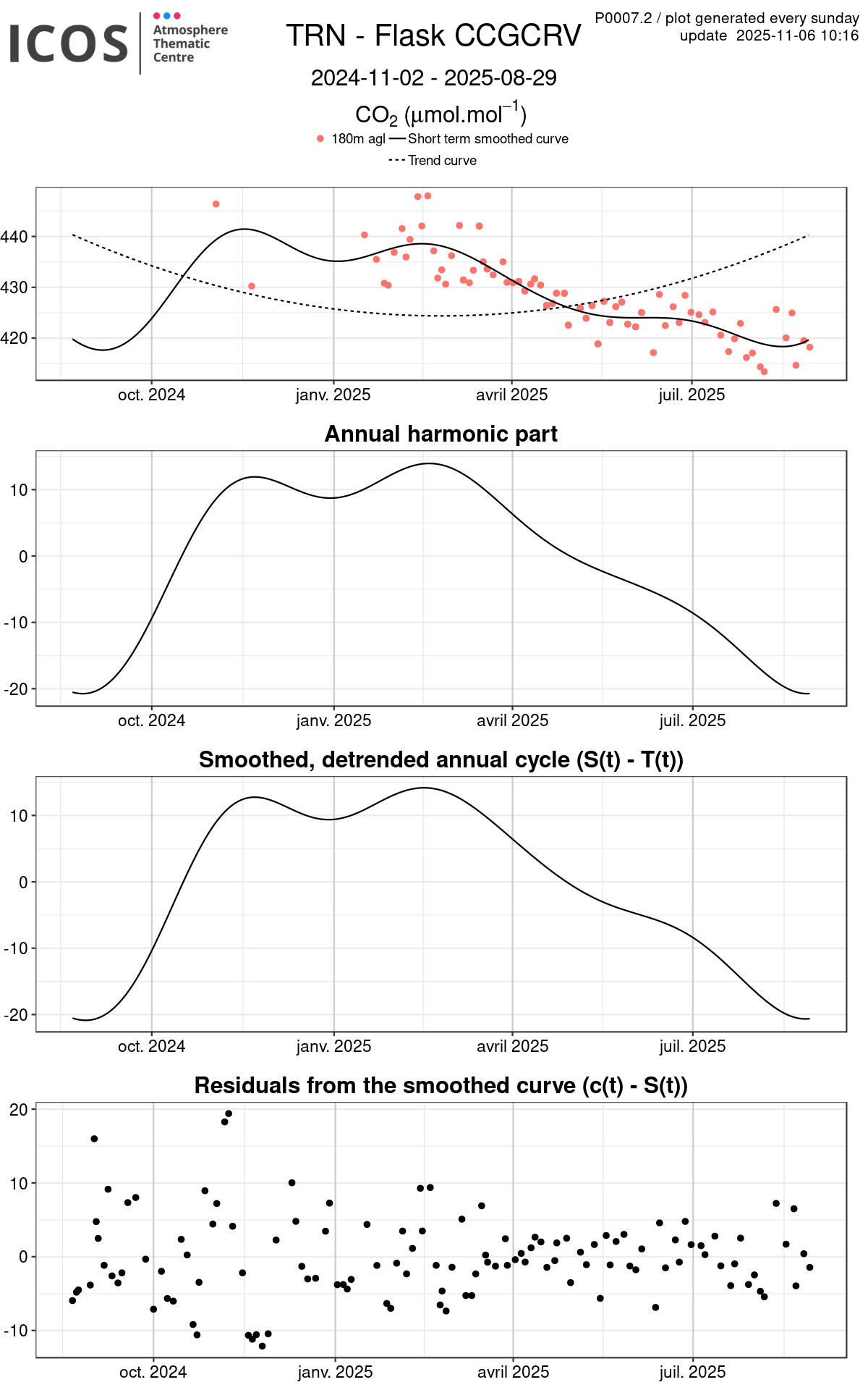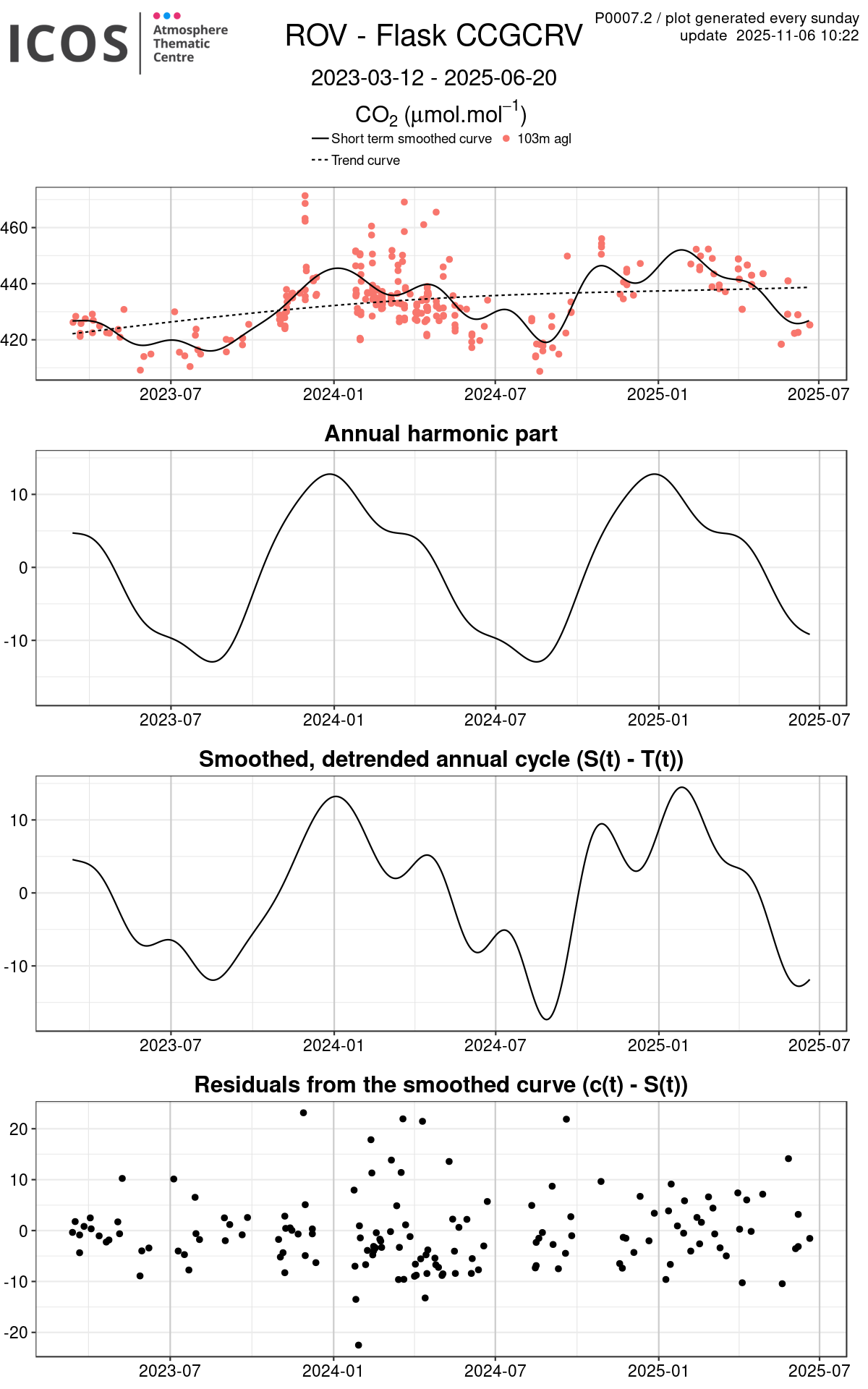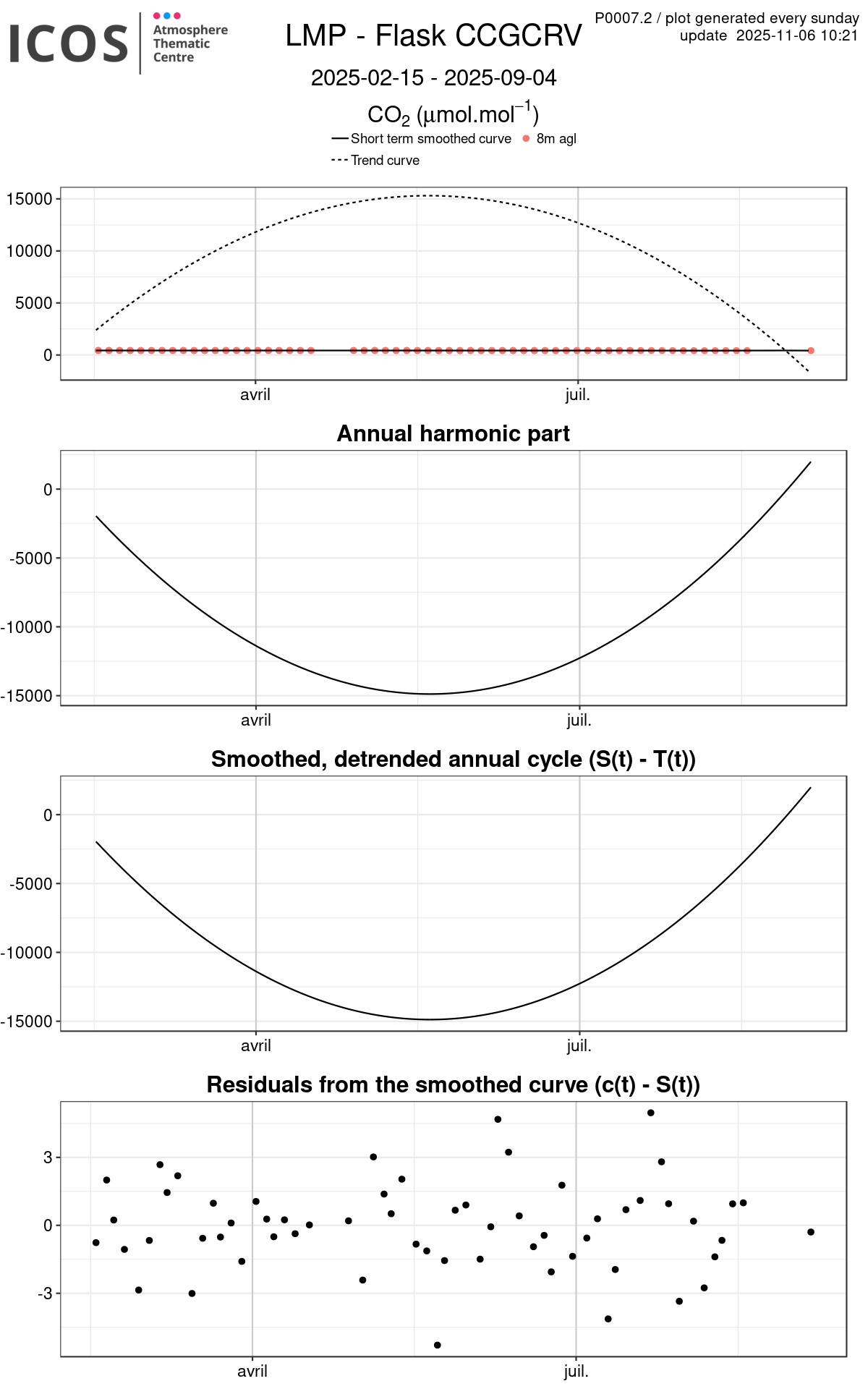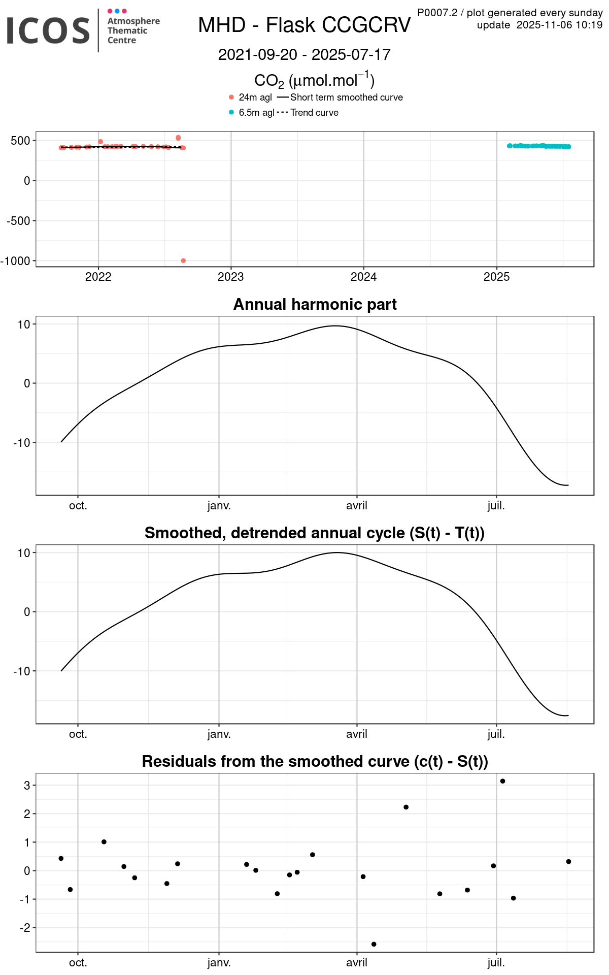 - Data used: flask data: average of the value of the input and output flasks. Trend, harmonics, residuals, etc.: NOAA's CCGCRV applied on flask data.