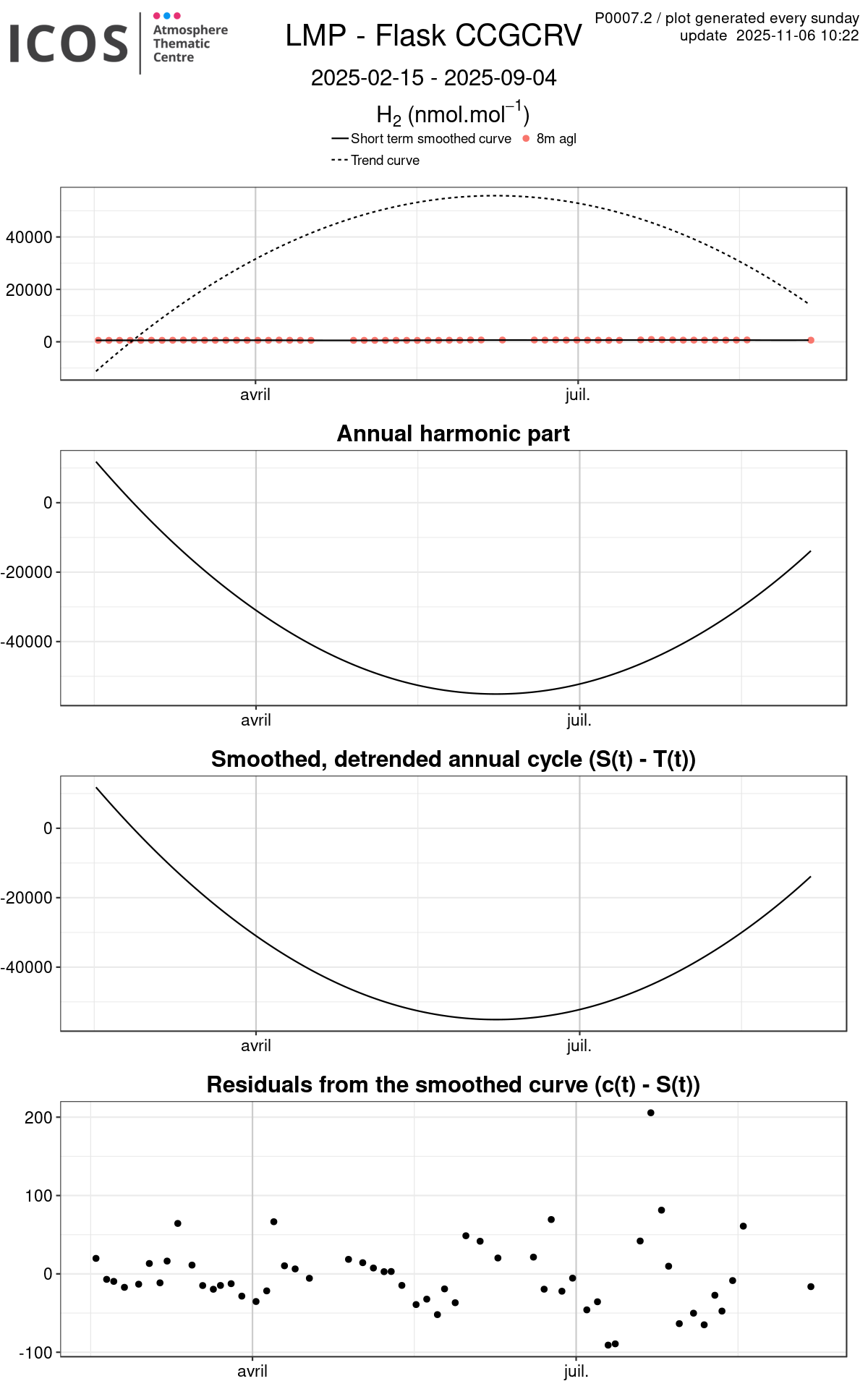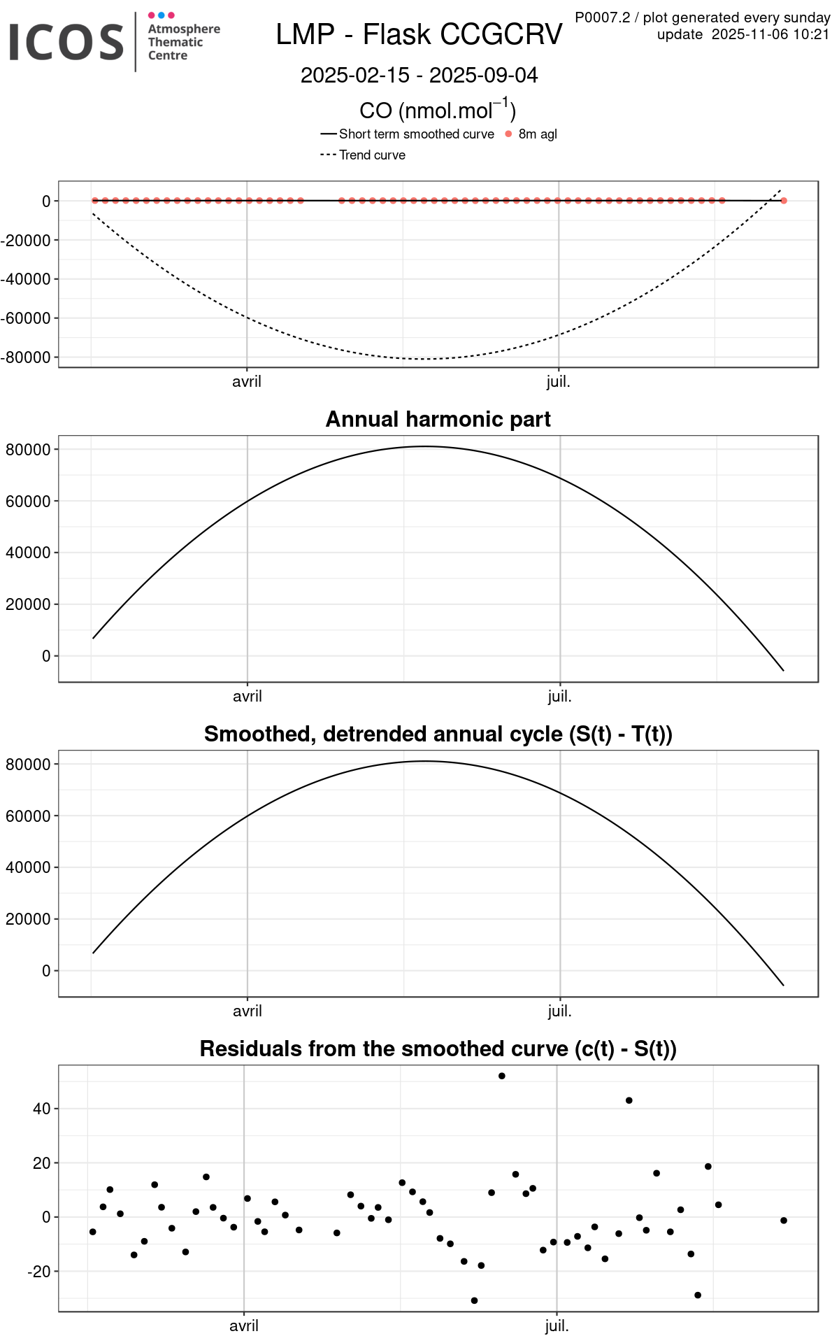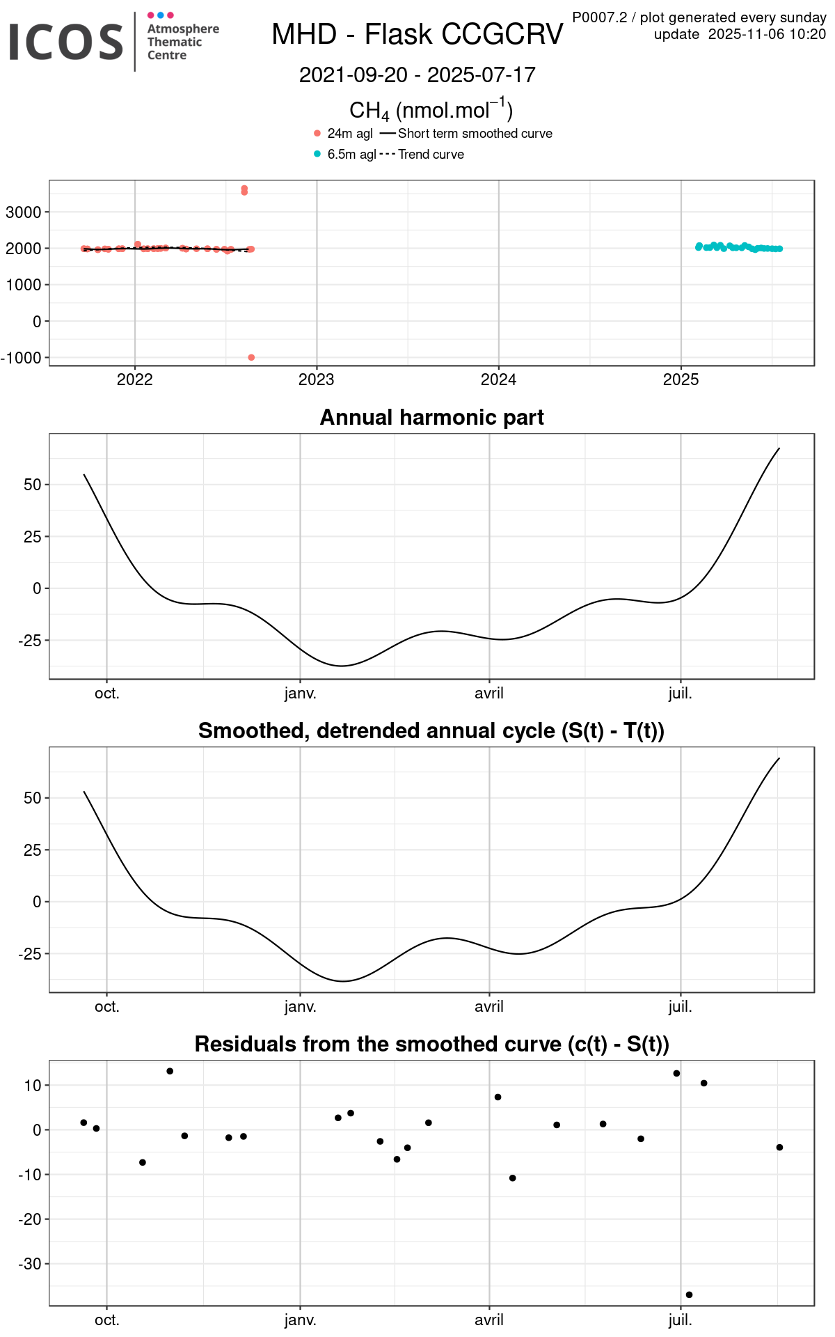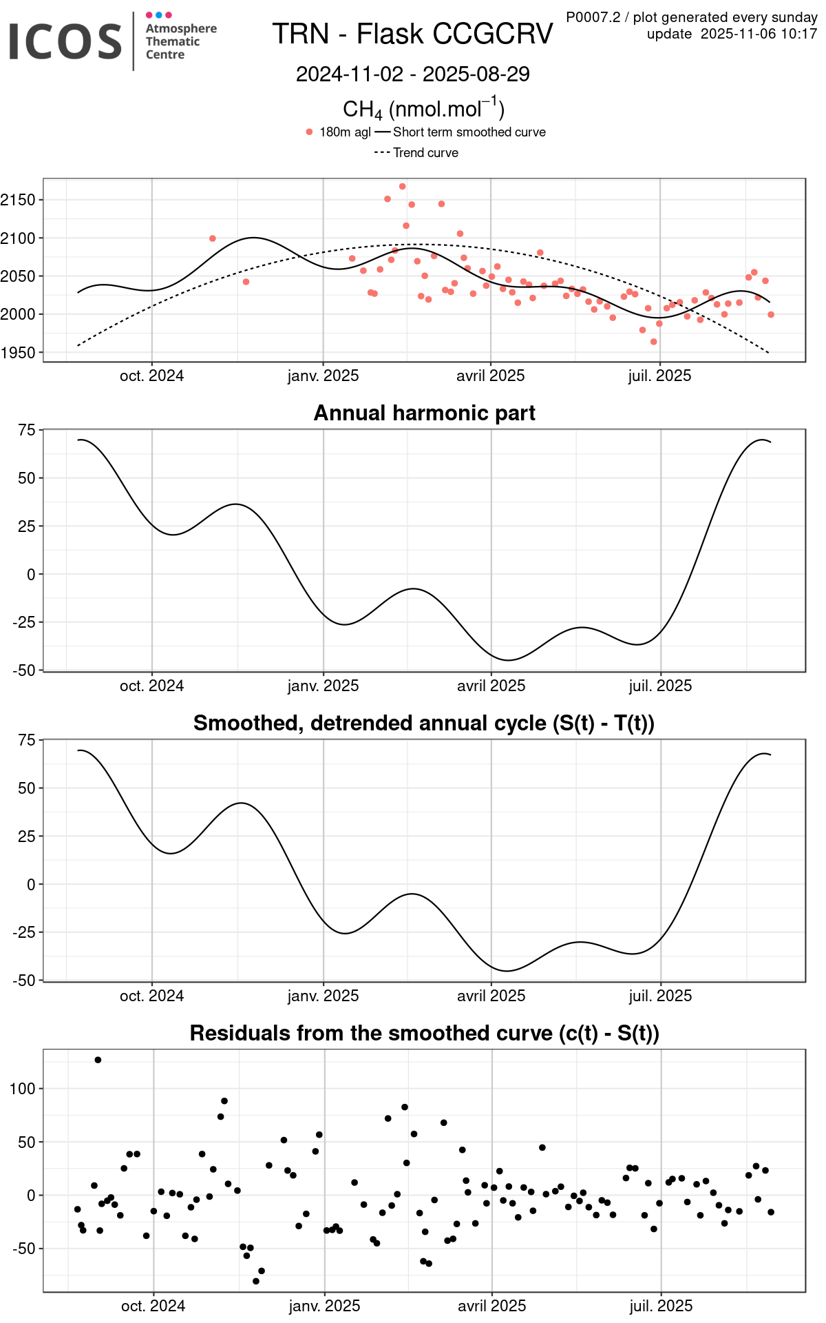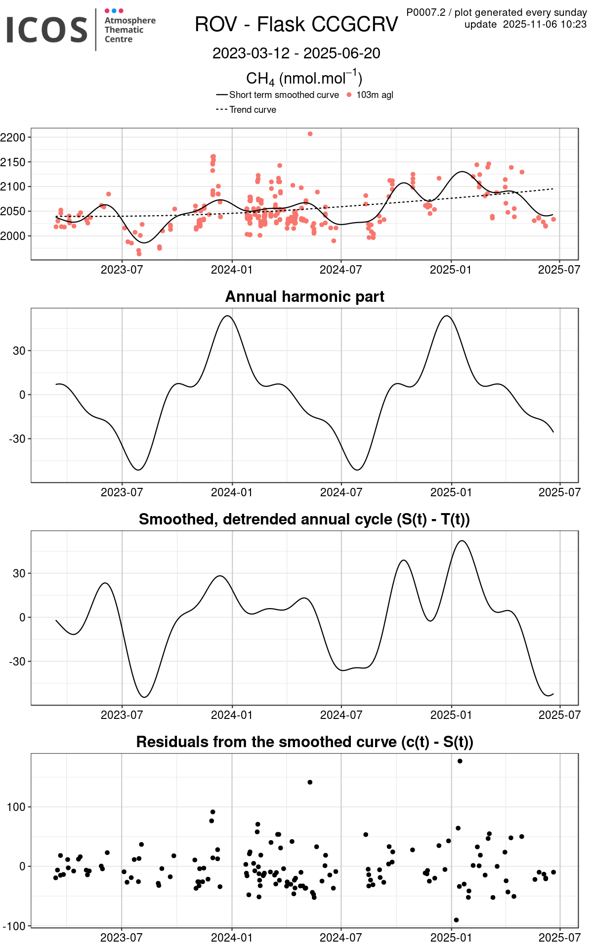 - Data used: flask data: average of the value of the input and output flasks. Trend, harmonics, residuals, etc.: NOAA's CCGCRV applied on flask data.