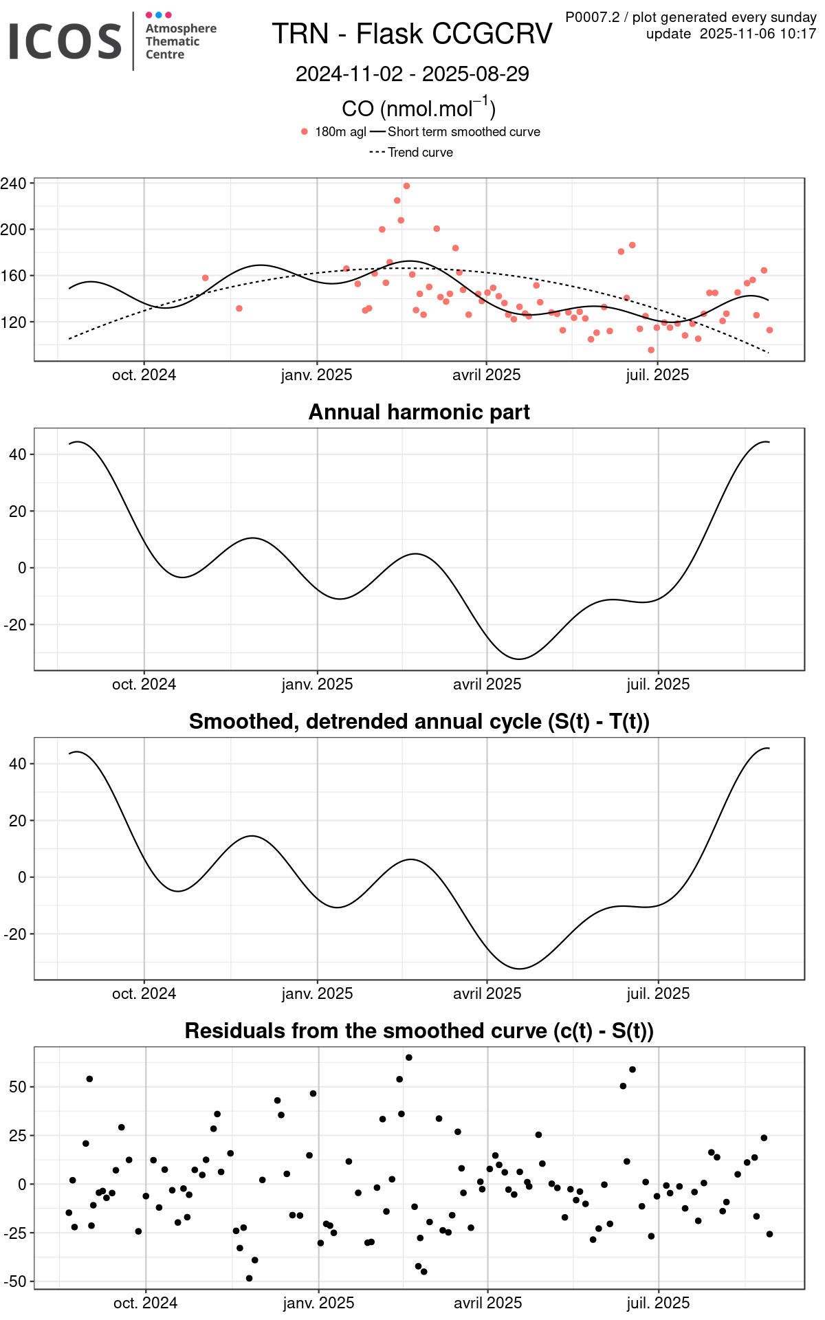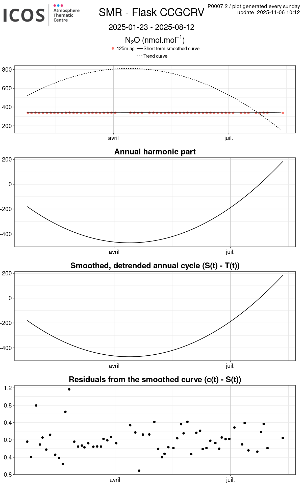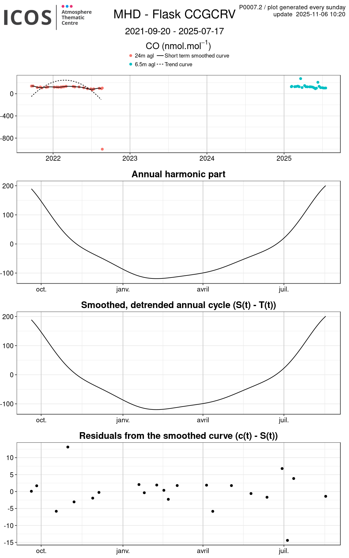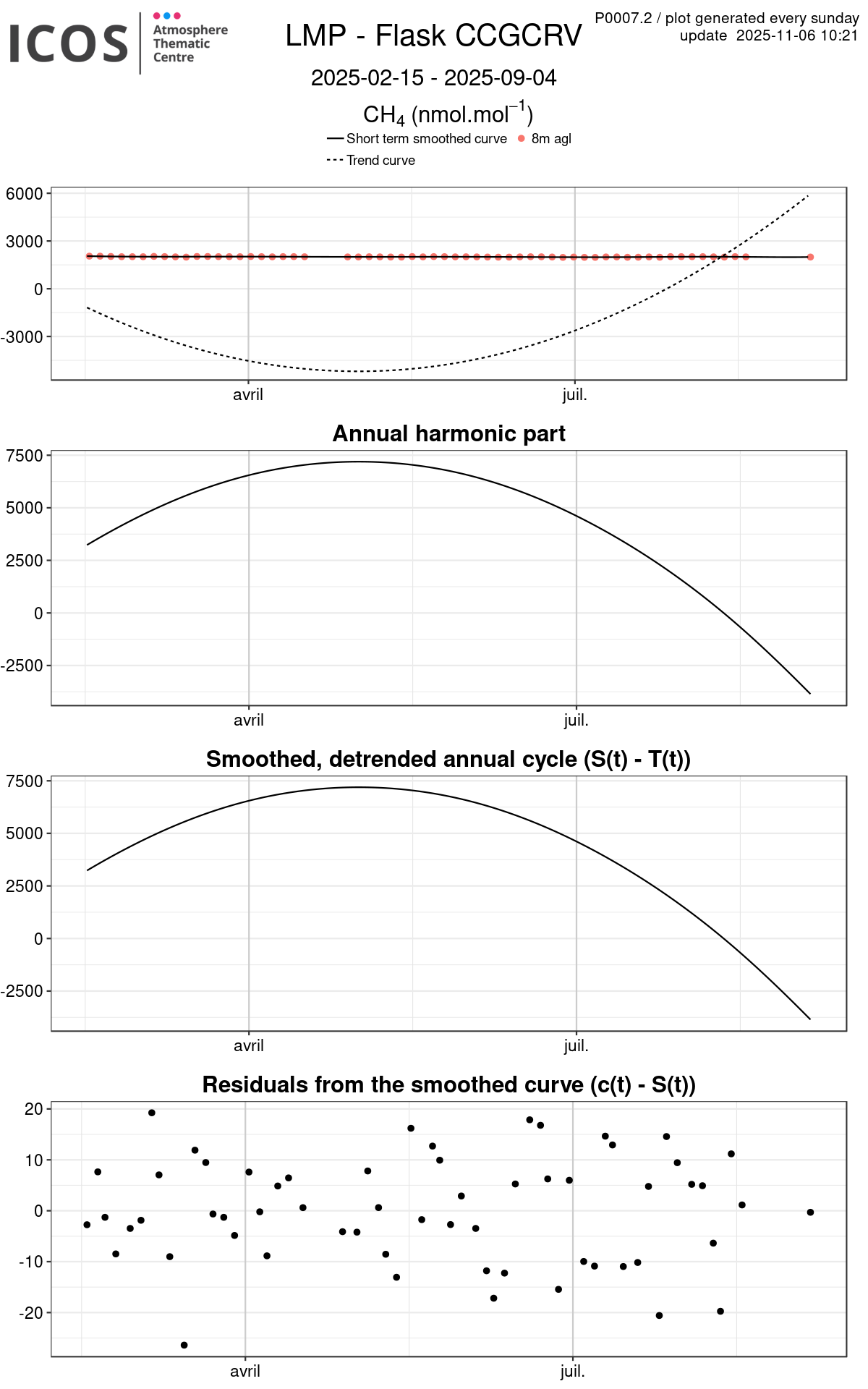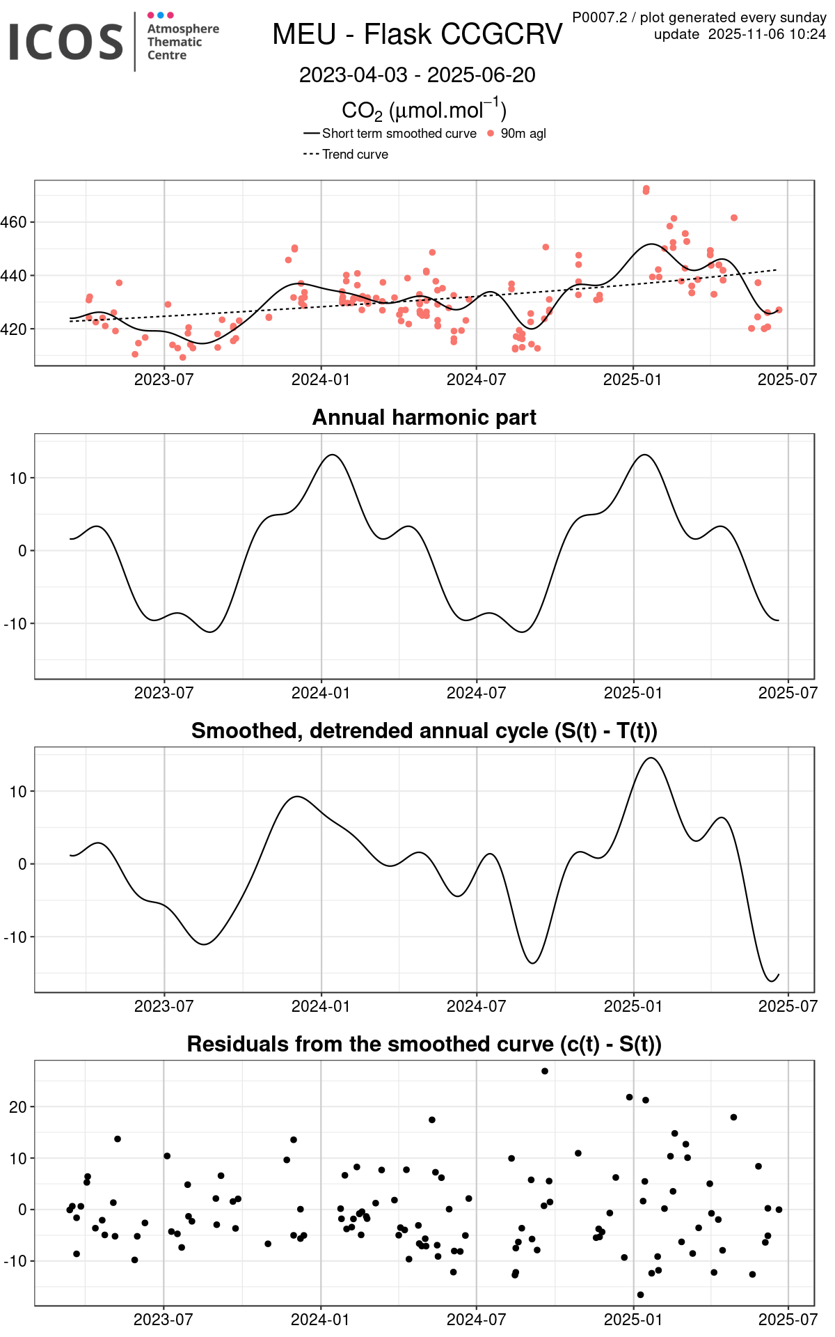 - Data used: flask data: average of the value of the input and output flasks. Trend, harmonics, residuals, etc.: NOAA's CCGCRV applied on flask data.