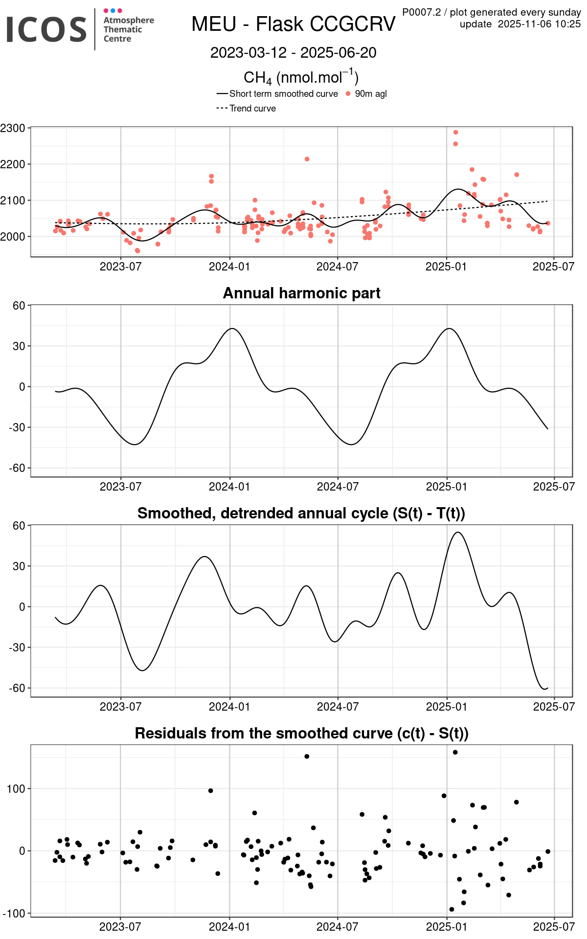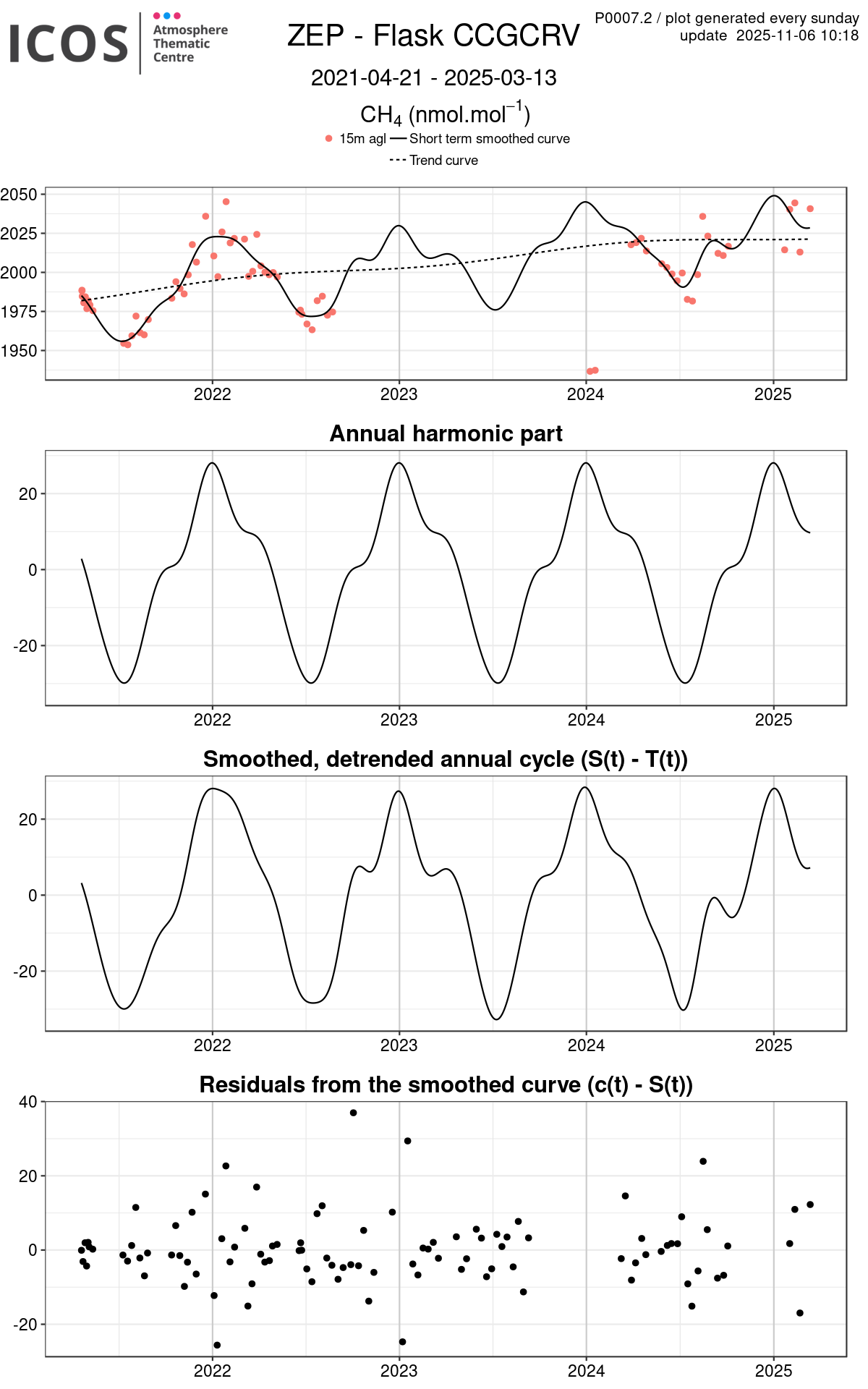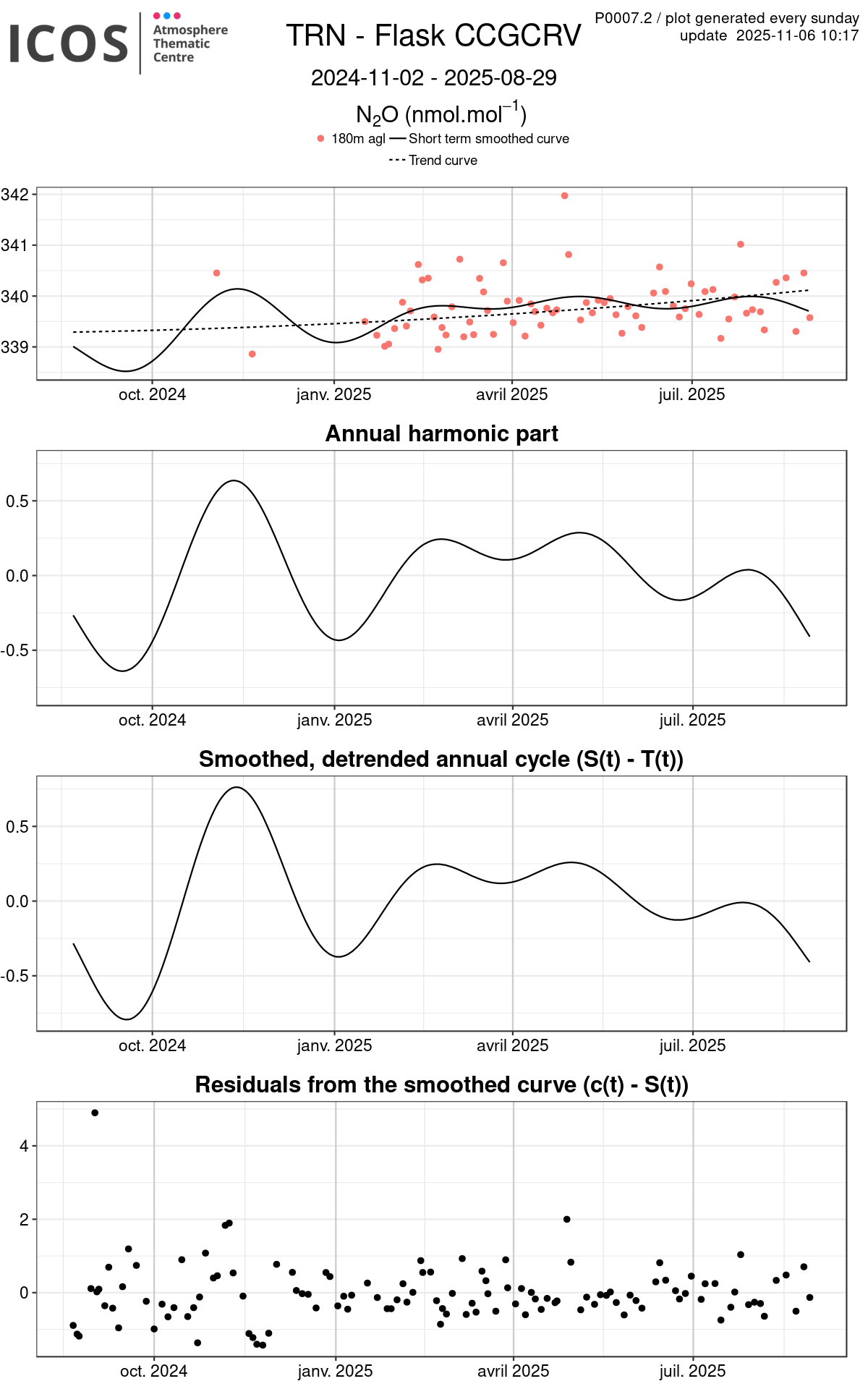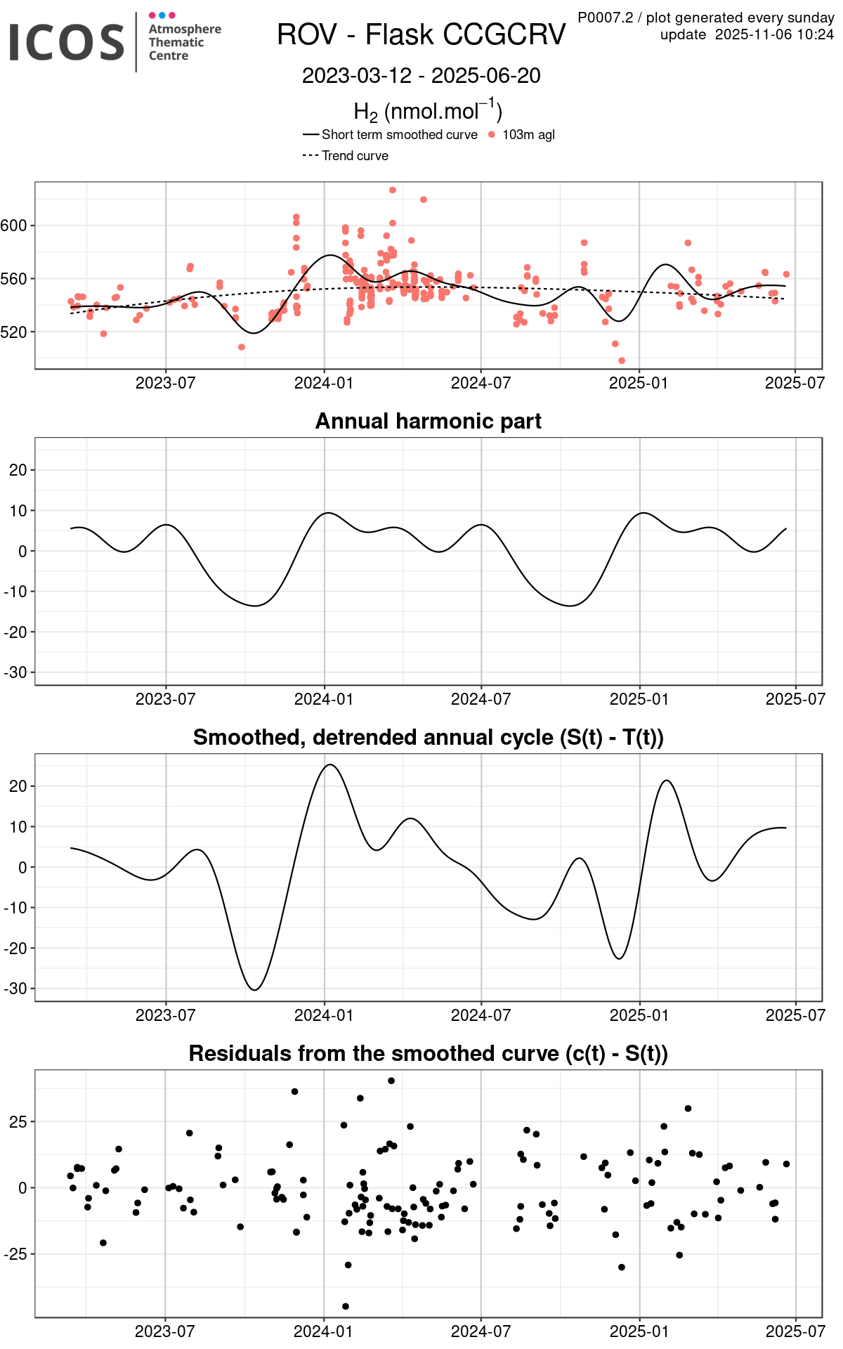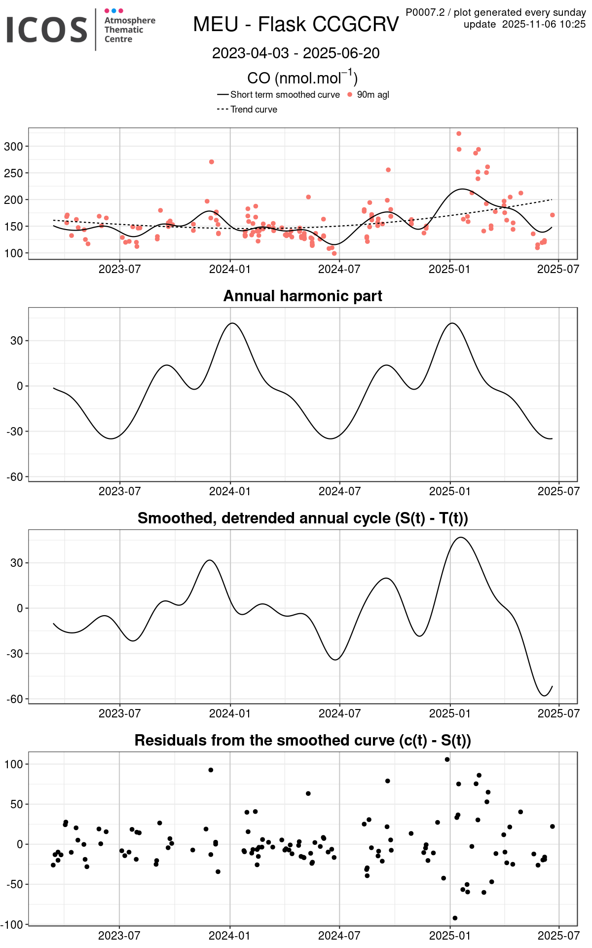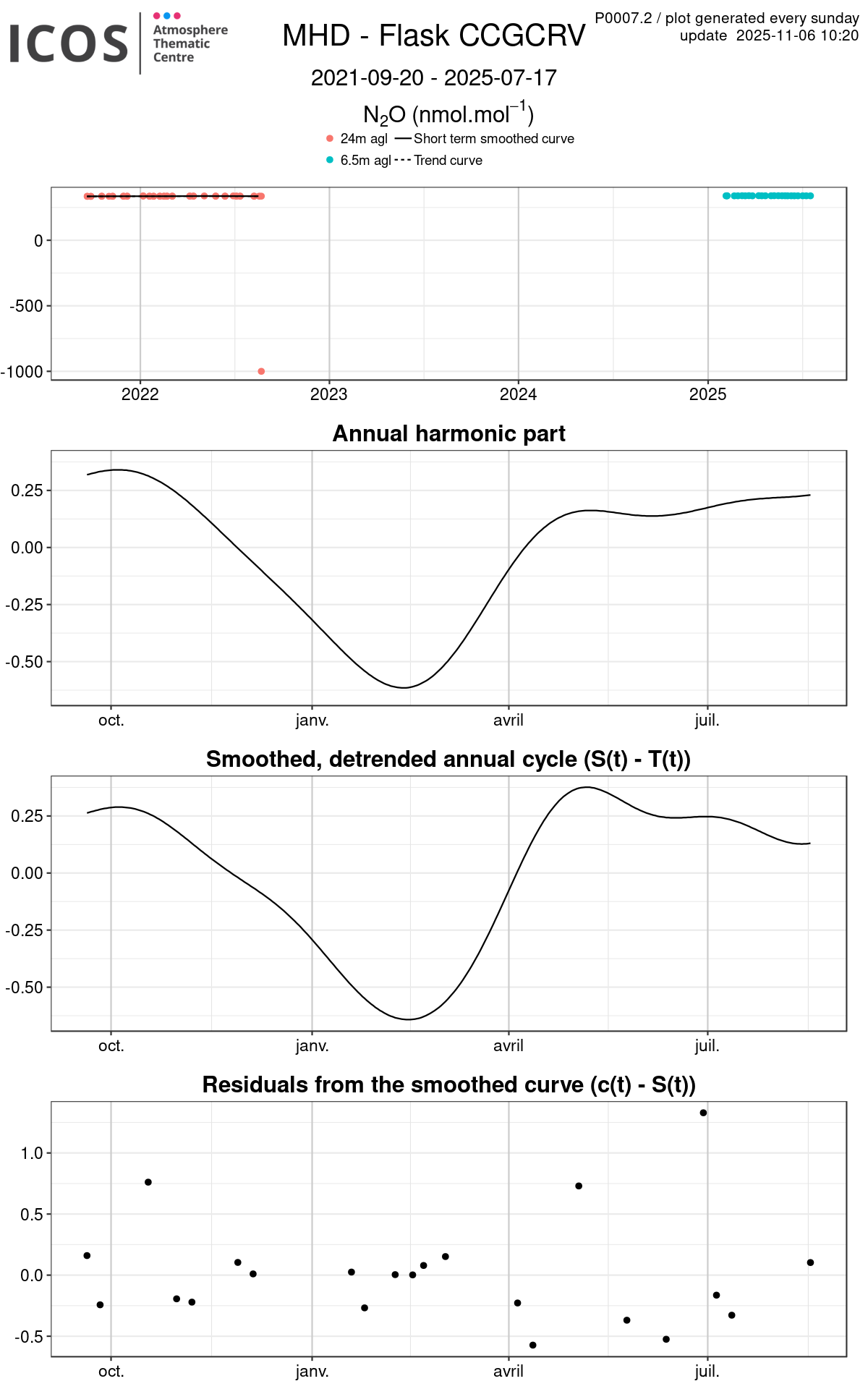 - Data used: flask data: average of the value of the input and output flasks. Trend, harmonics, residuals, etc.: NOAA's CCGCRV applied on flask data.