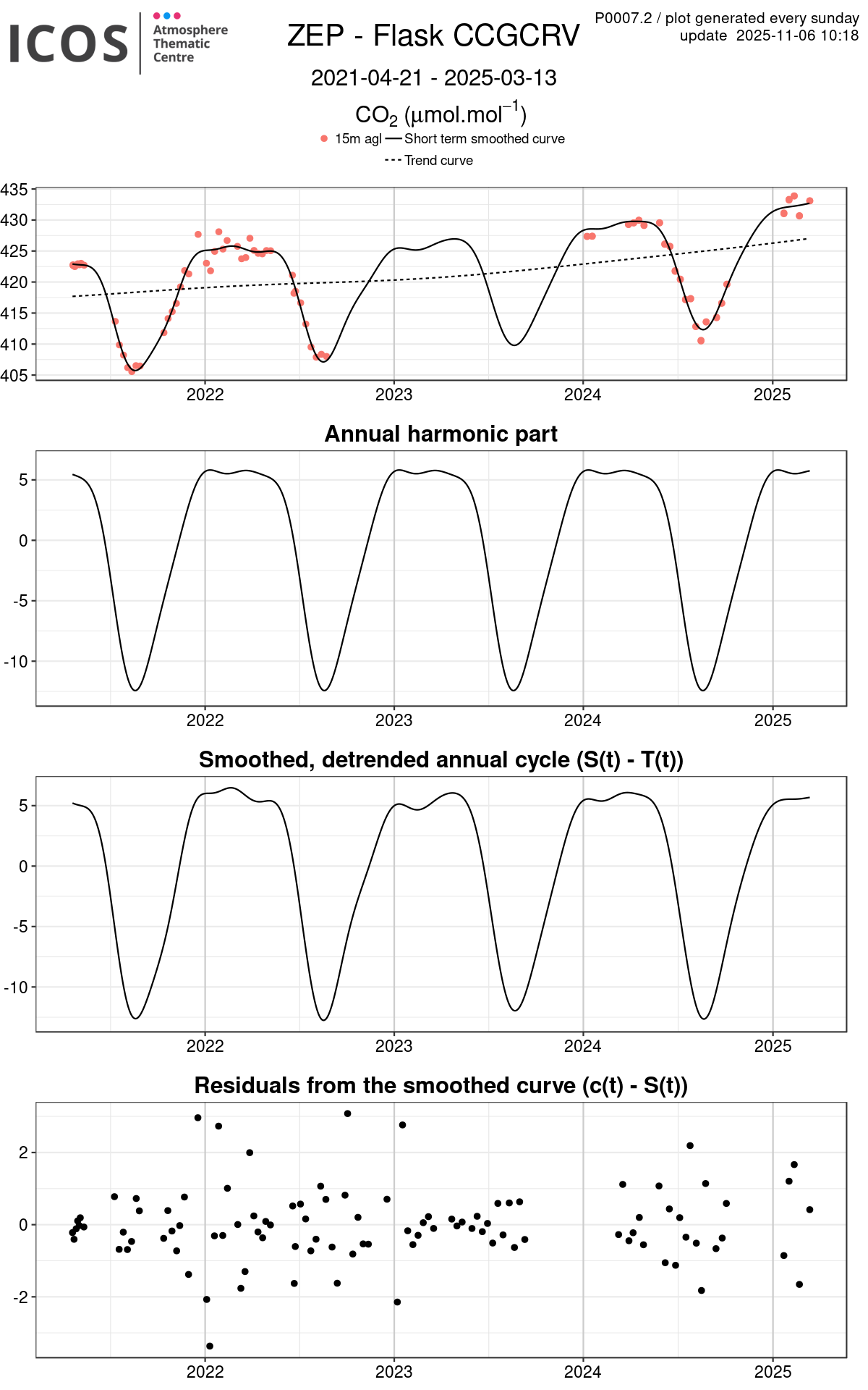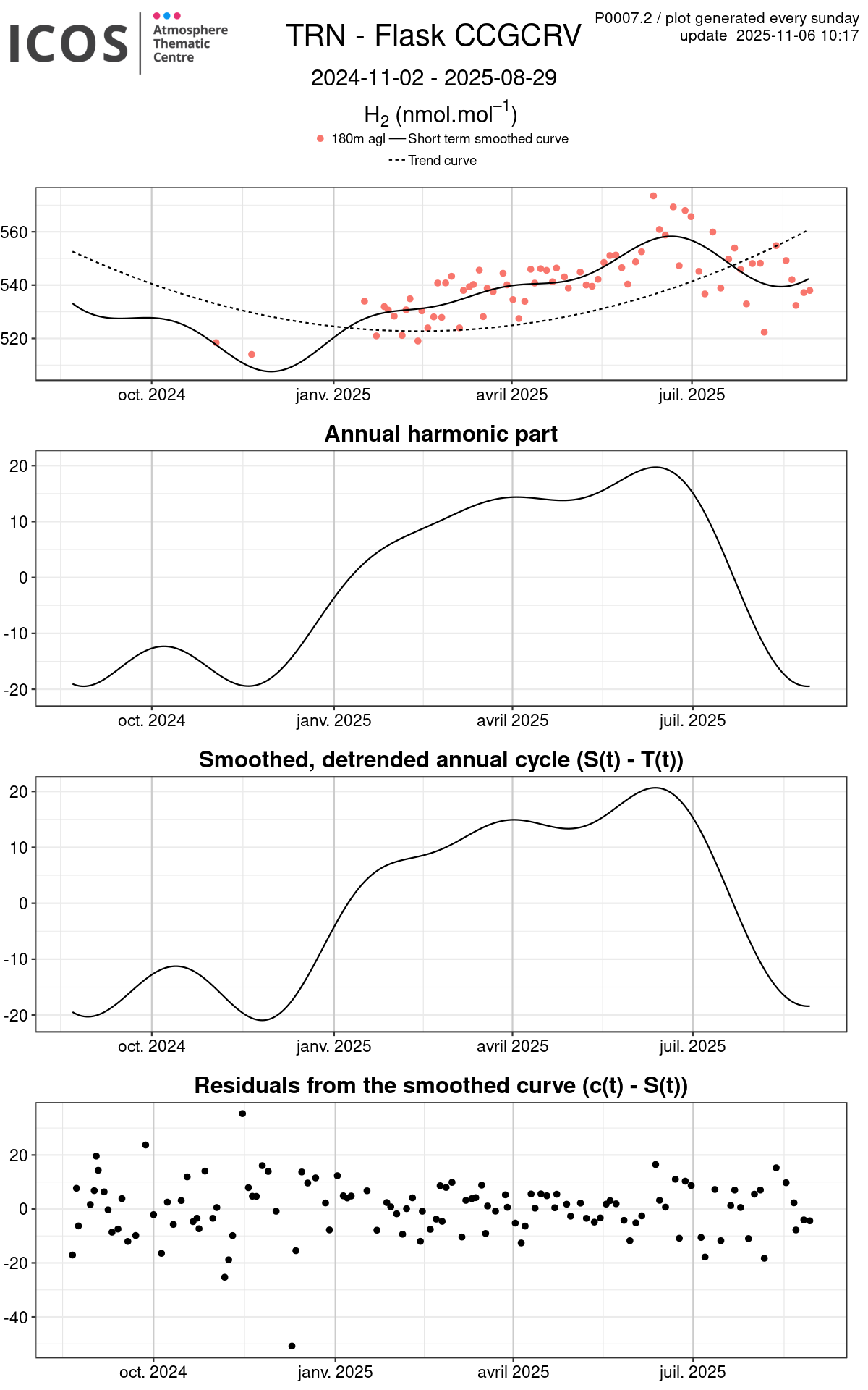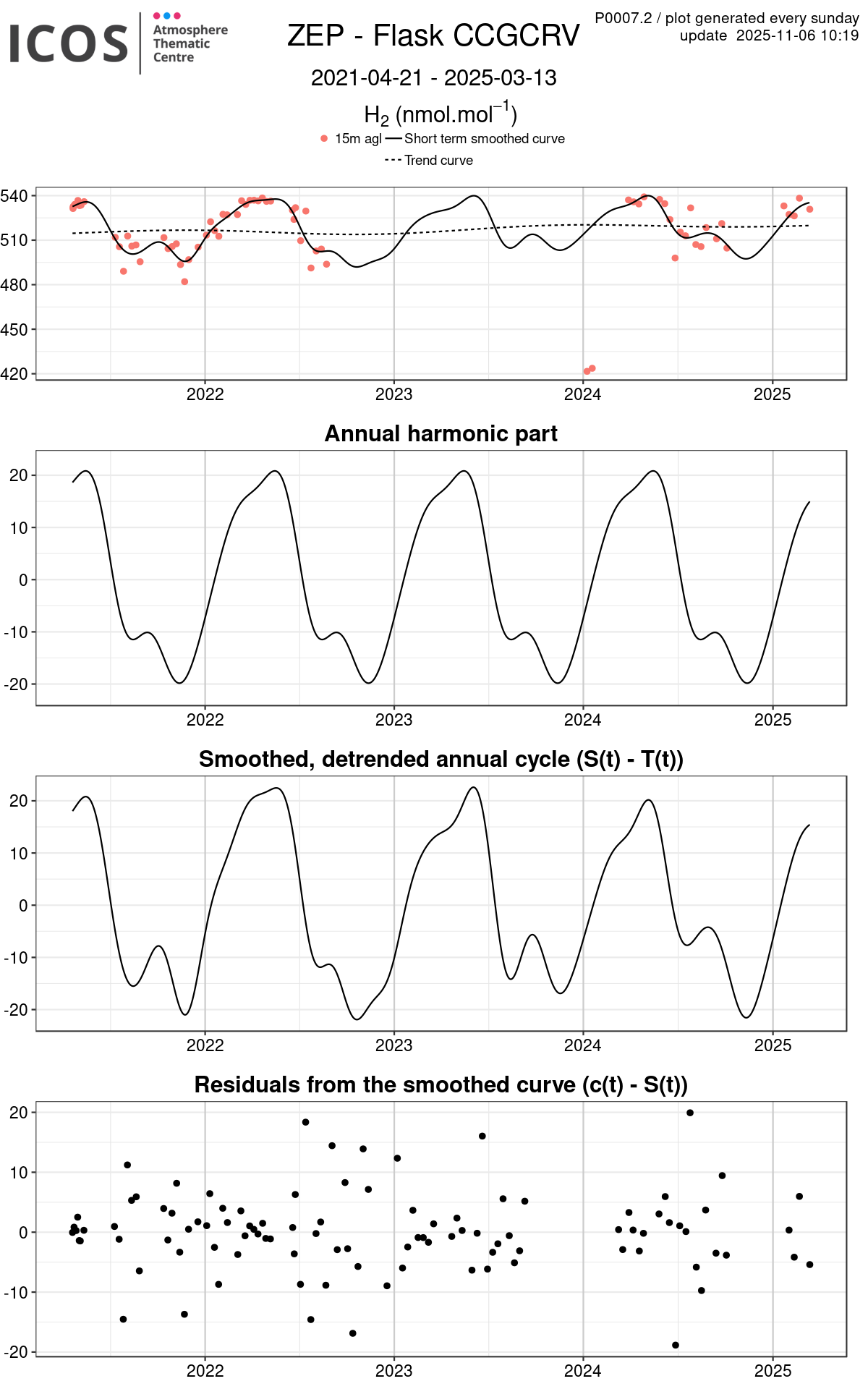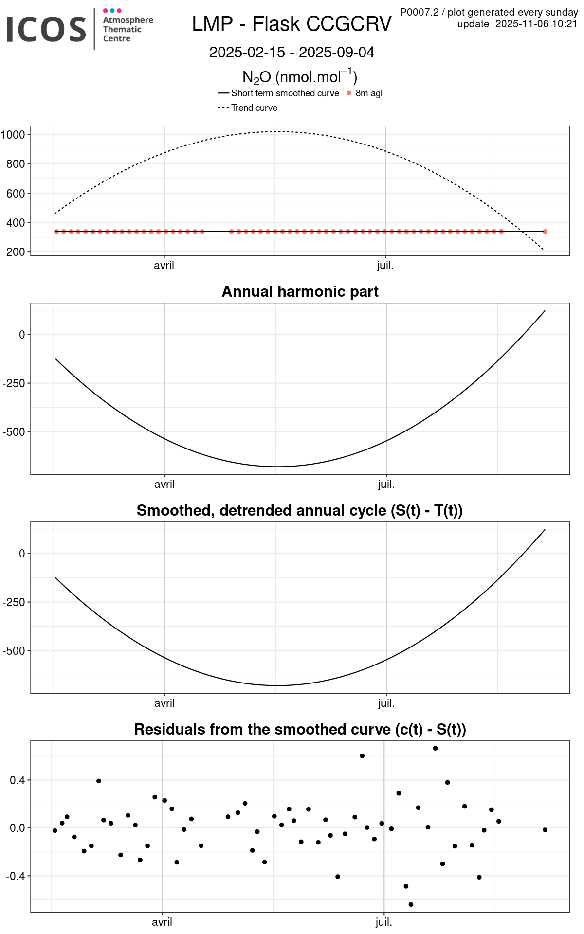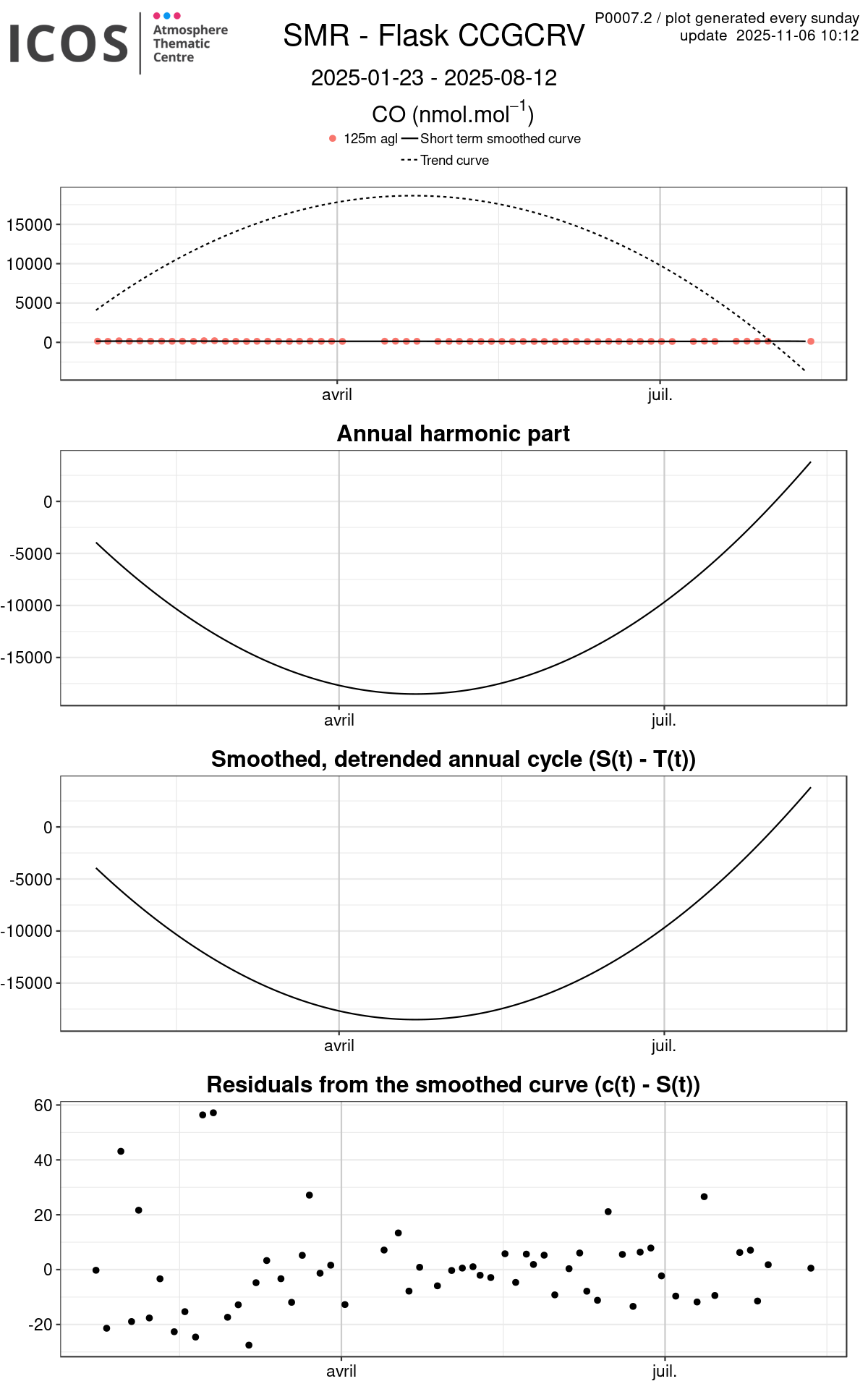 - Data used: flask data: average of the value of the input and output flasks. Trend, harmonics, residuals, etc.: NOAA's CCGCRV applied on flask data.