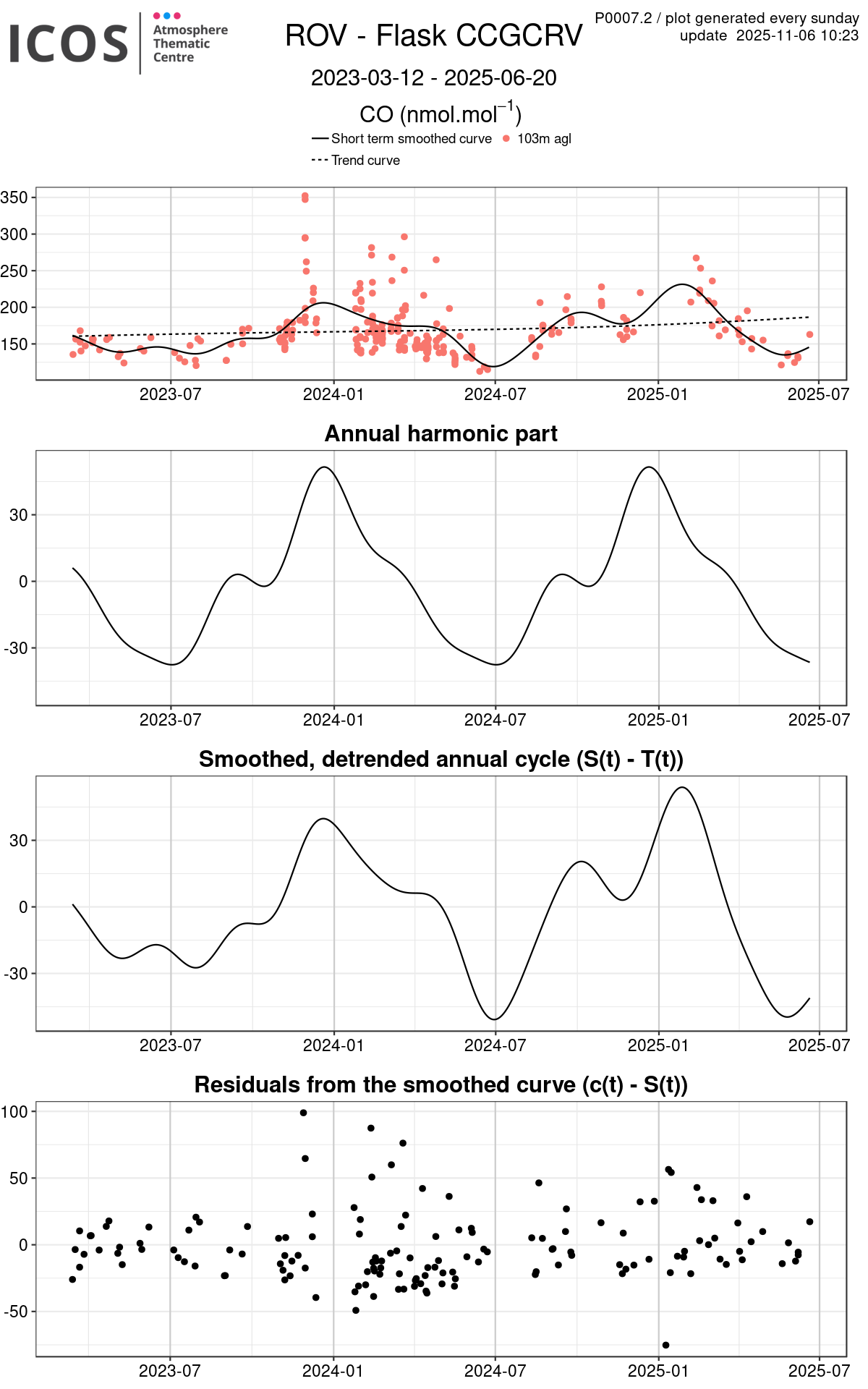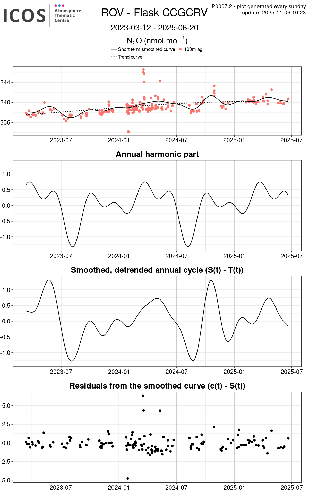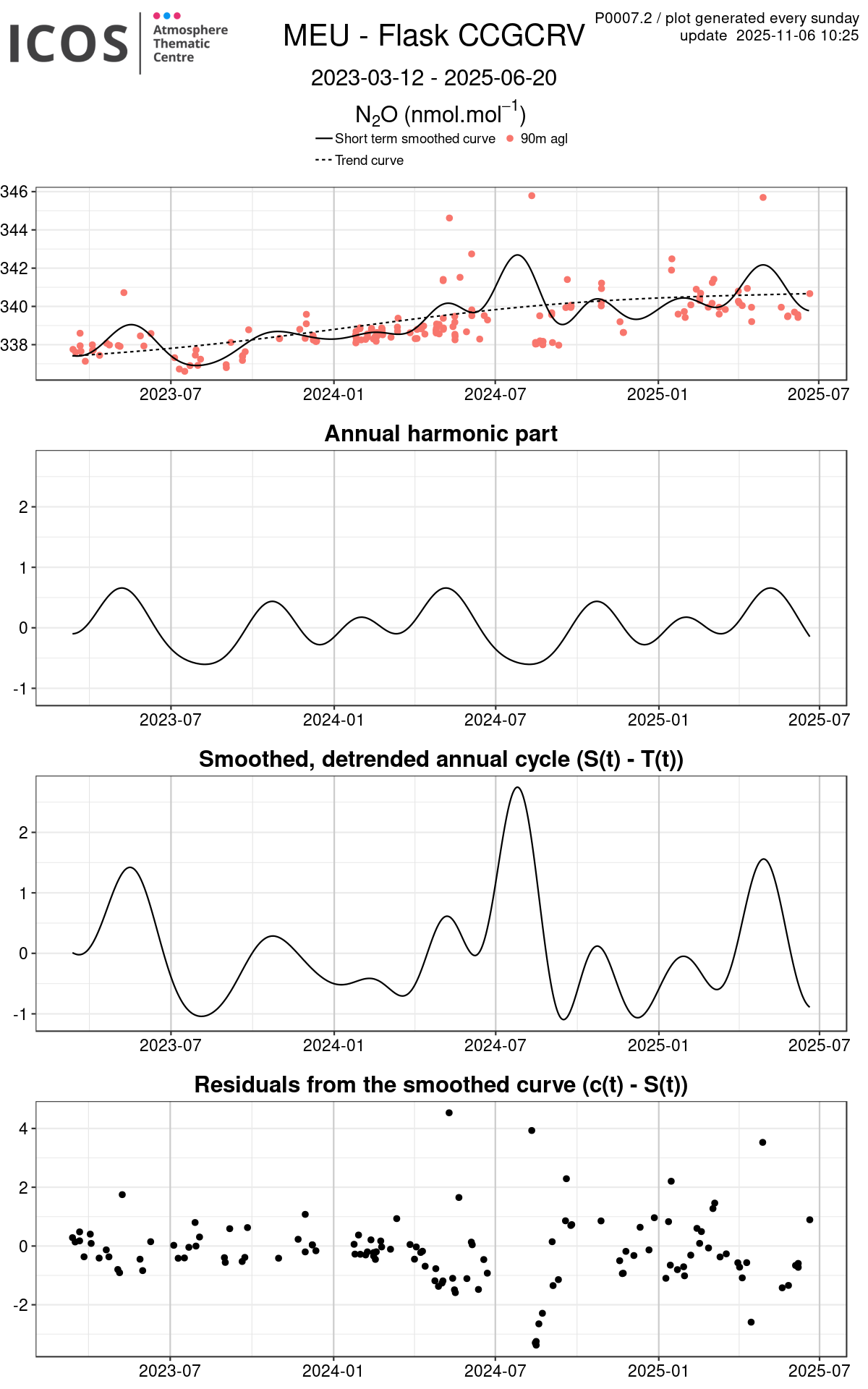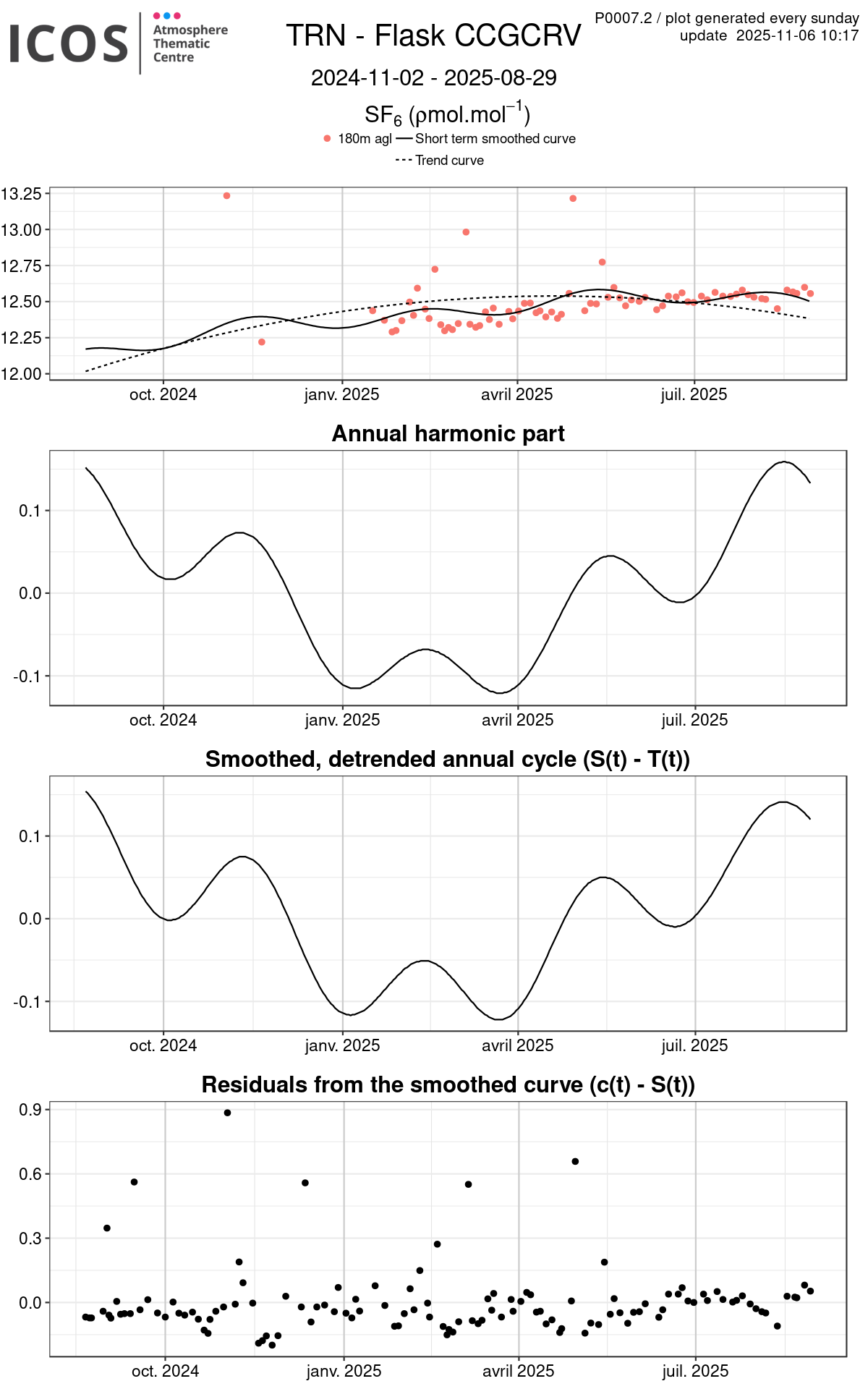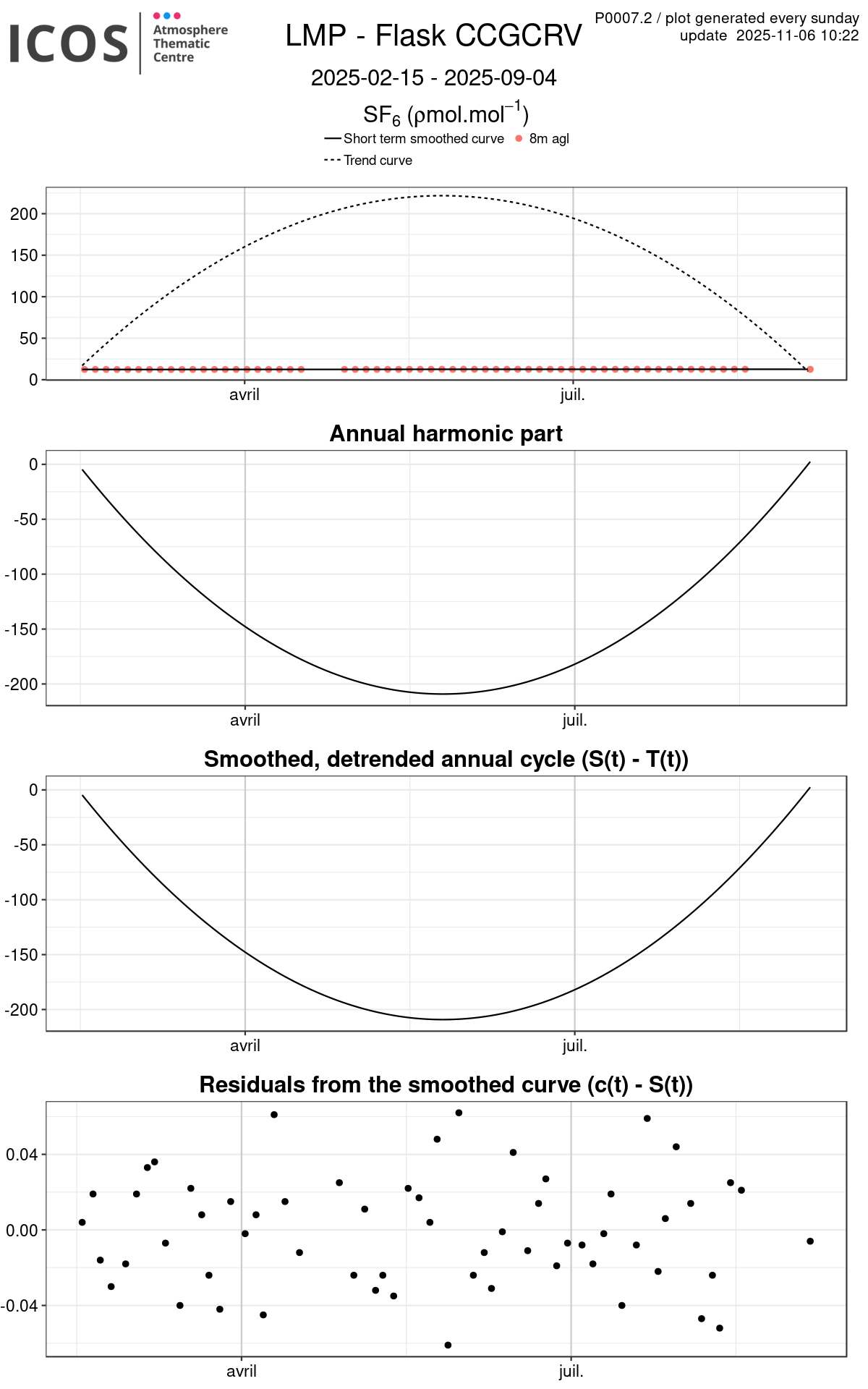 - Data used: flask data: average of the value of the input and output flasks. Trend, harmonics, residuals, etc.: NOAA's CCGCRV applied on flask data.