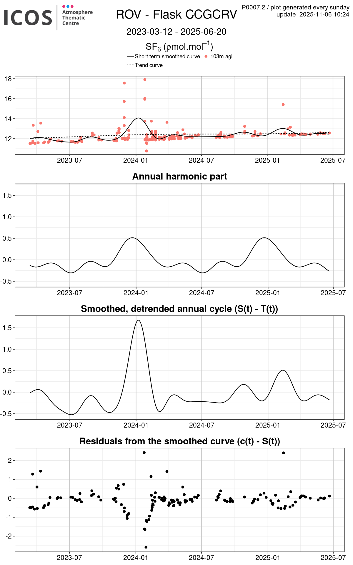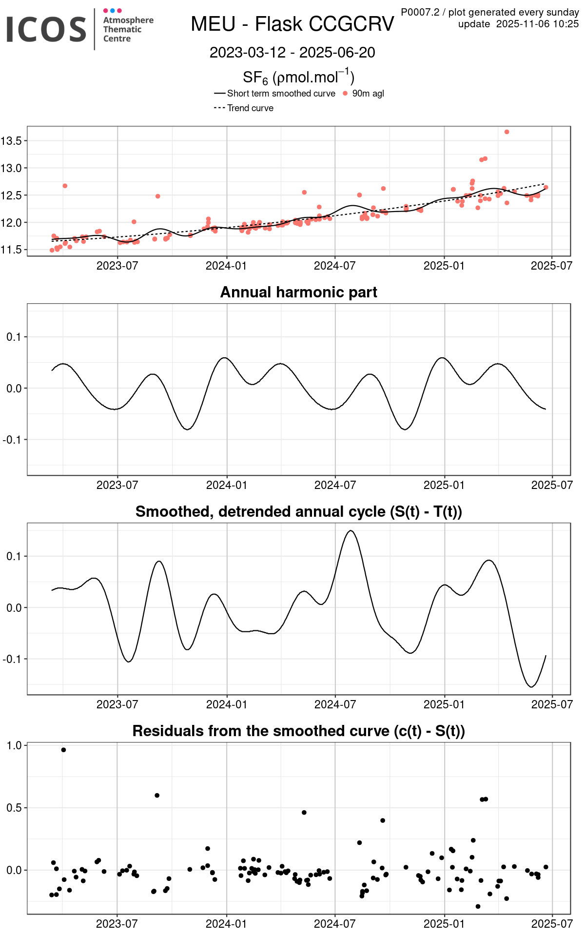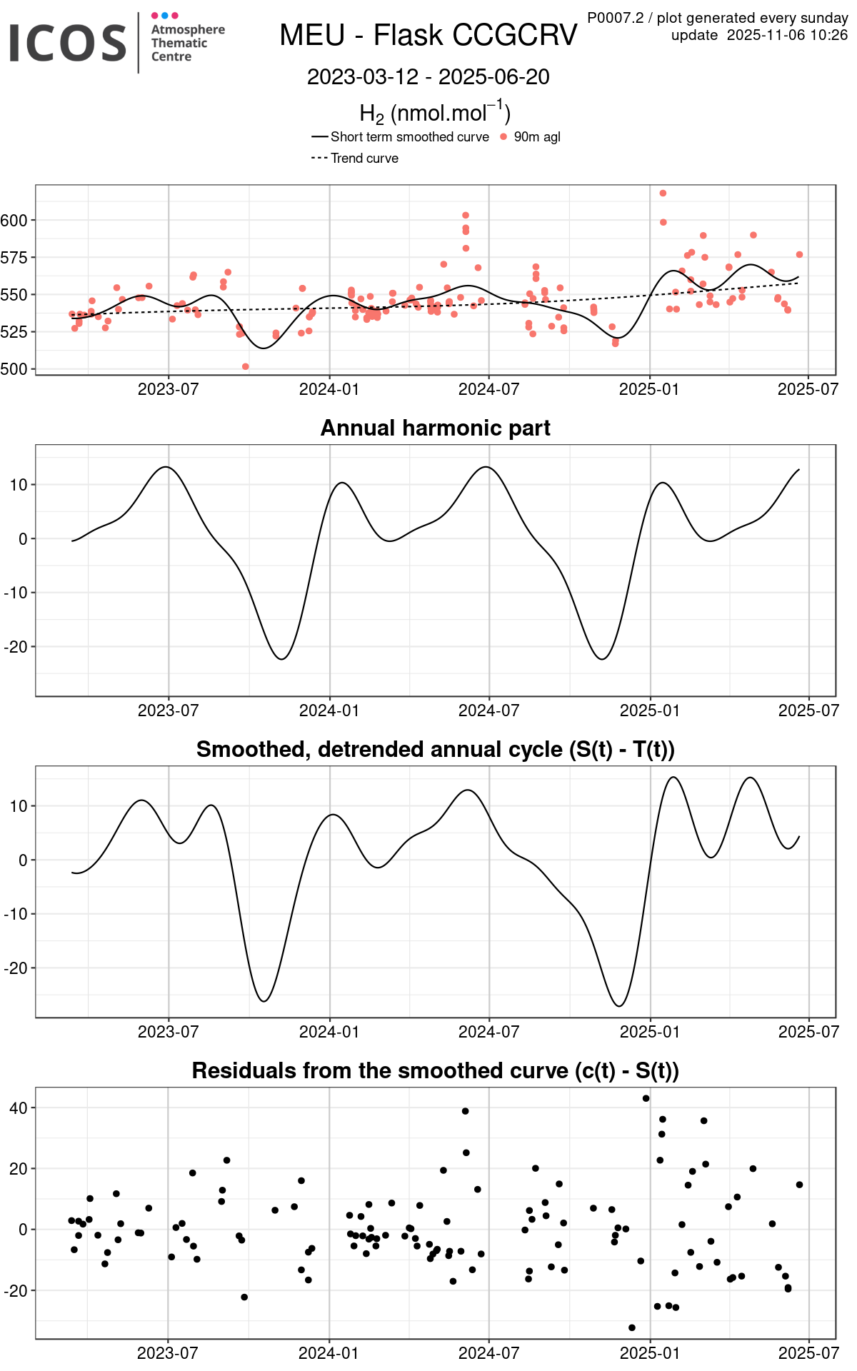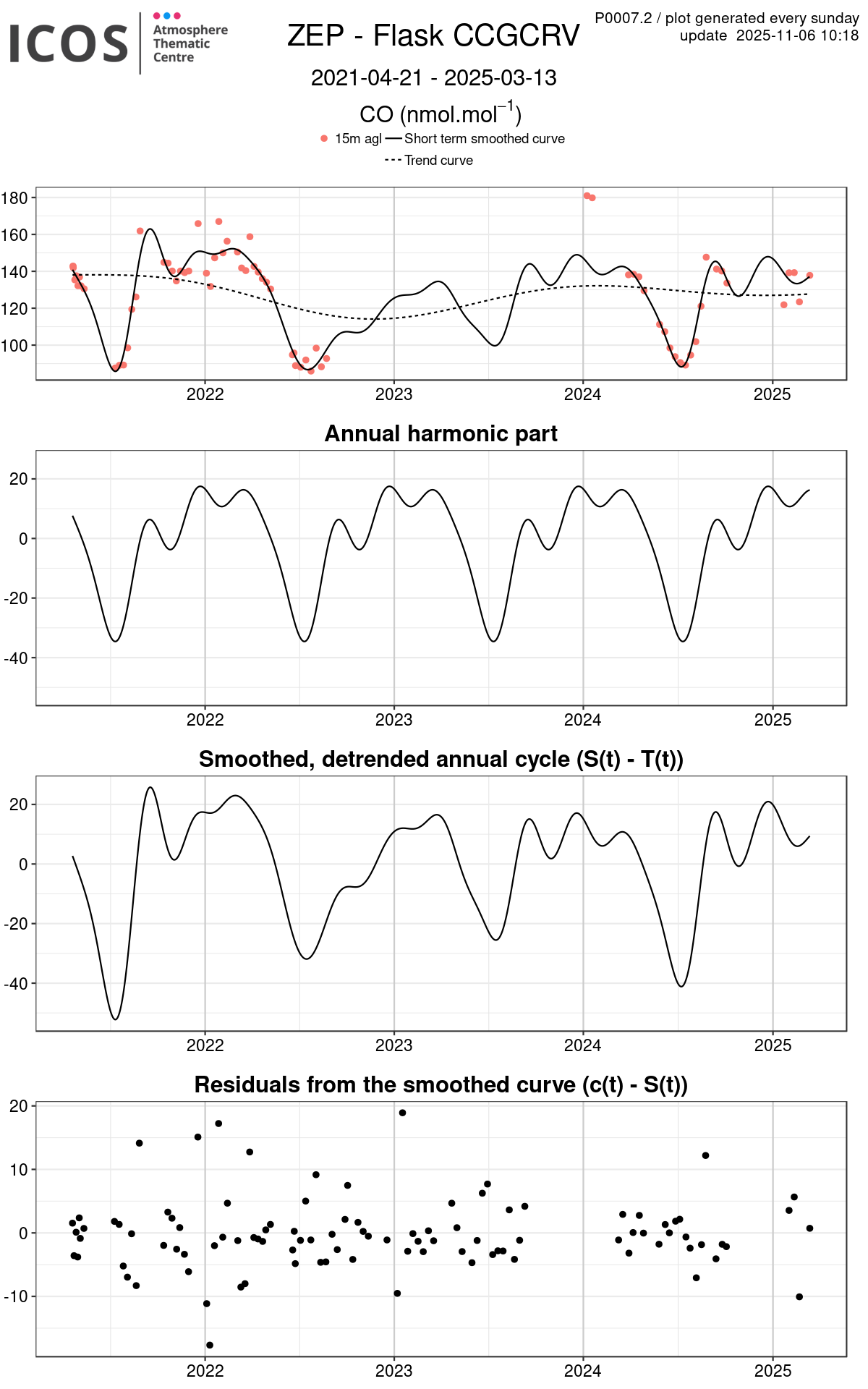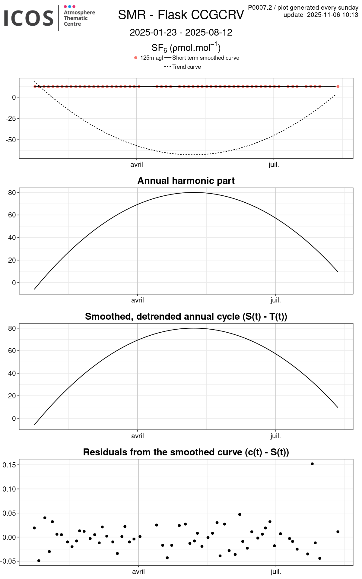 - Data used: flask data: average of the value of the input and output flasks. Trend, harmonics, residuals, etc.: NOAA's CCGCRV applied on flask data.