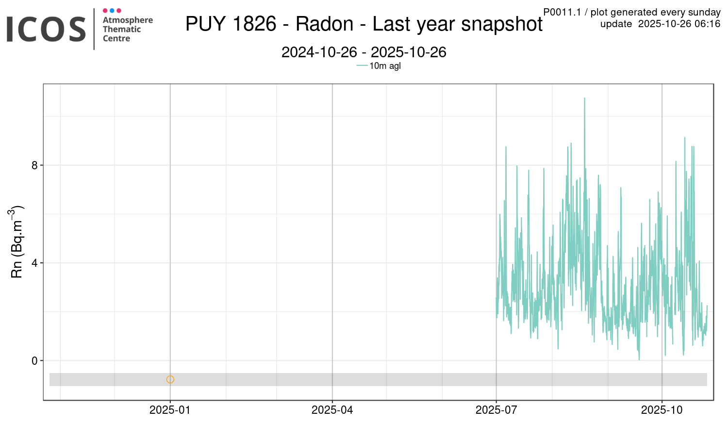 P0011.1 product shows the radon timeseries, over the last rolling year.