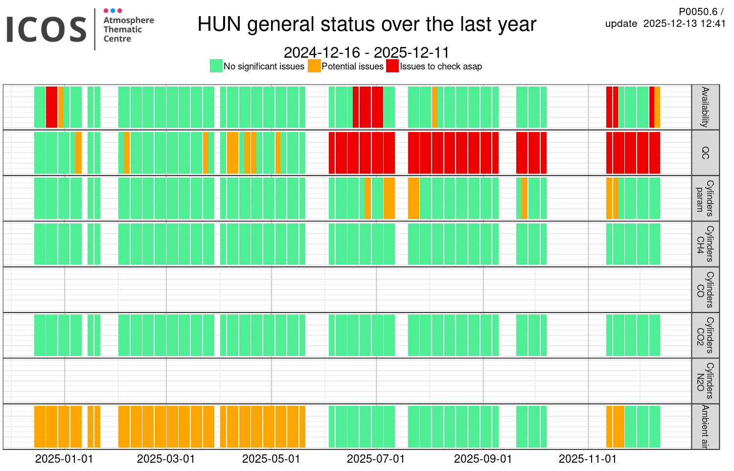 The station is located 400-1200 m to the SE from the small village of Hegyhátsál (150 inhabitants). The region is sparsely populated in Central European sense. Within 6 km there are only a few small villages (60-330 inhabitants) and a somewhat larger settlement (Nádasd, 3 km to NWW, 1350 inhabitants). Within a 20 km radius, the only notable settlement is Körmend (7 km, NNW, 11,000) inhabitants. The nearest bigger towns are Zalaegerszeg (20 km, SE, 58,000 inhabitants) and Szombathely (20 km, N, 79,000 inhabitants). The only city within 100 km with a population higher than 100,000 inhabitants is Graz, Austria (90 km, W, 330,000 inhabitants). Within the radius of 20 km of the station, there is no notable industrial activity in this dominantly agricultural region. The local roads carry low traffic, 300-600 vehicle units per day. The only major road in the vicinity of the station is the 2x1 lane trans-European E65 running northwest-southeast with 4700 vehicle units per day. Its closest point to the monitoring site is about 500 m to the southwest. The agricultural activity might influence methane and nitrous oxide measurements occasionally.