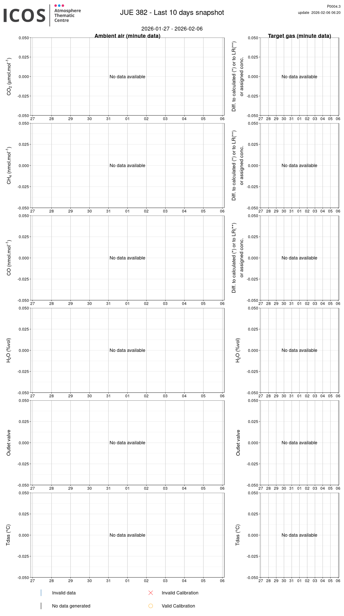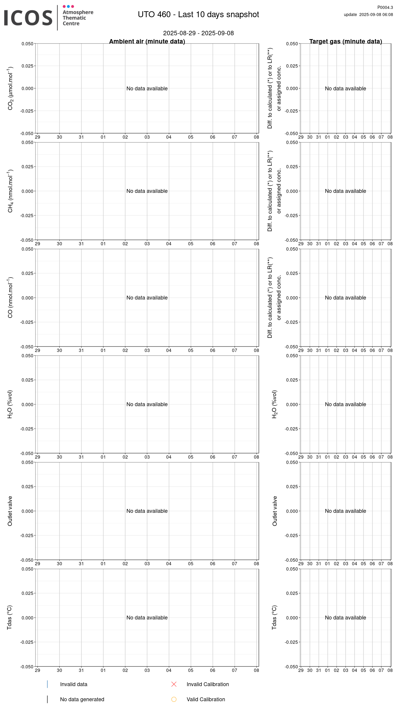 - Y-axis: For GHG species, the difference between the measured value and the calculated (if tank's legend is followed by a star "*") or assigned value is computed. For H2O, the absolute value is plotted.
