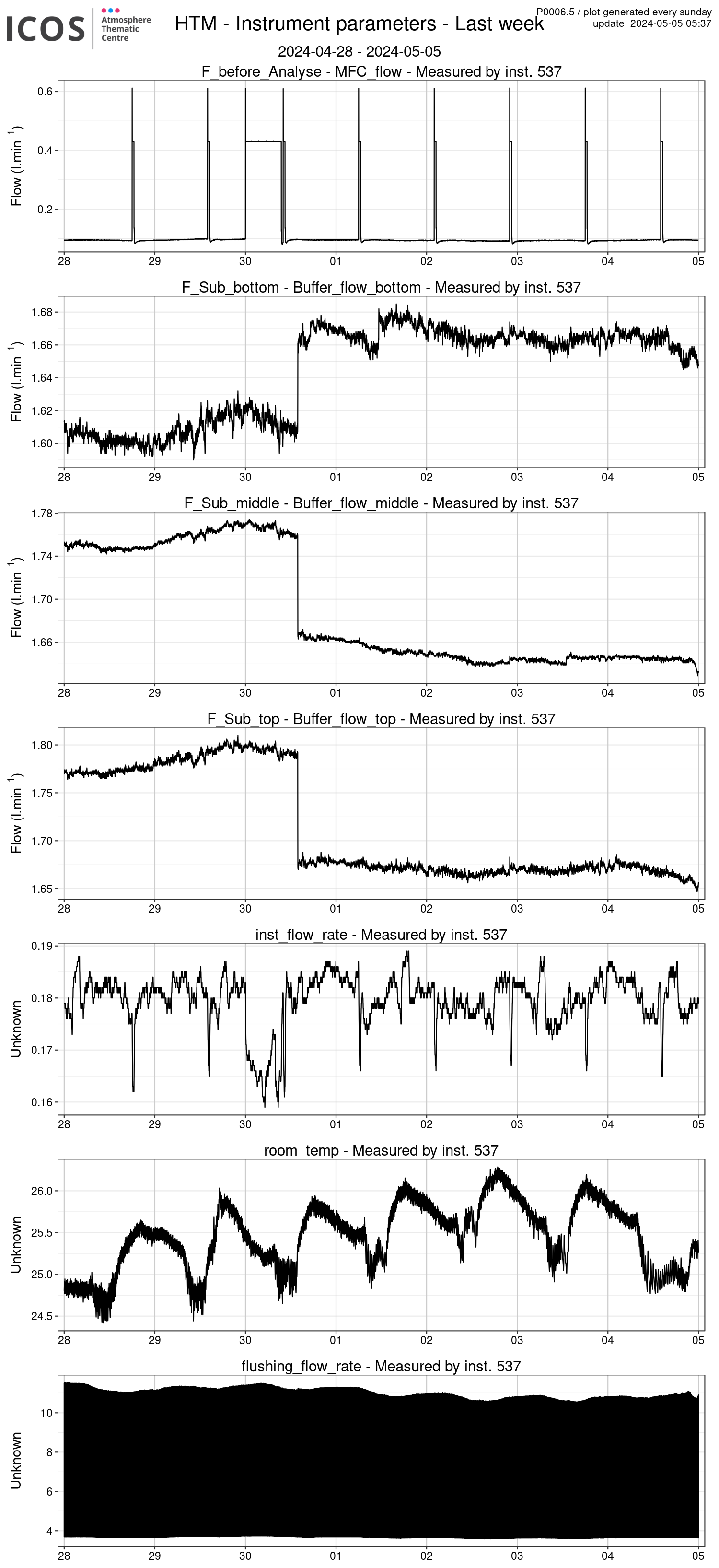 P0006.5 product shows internal instrument parameters. Each box plot displays an internal instrument-related parameter.