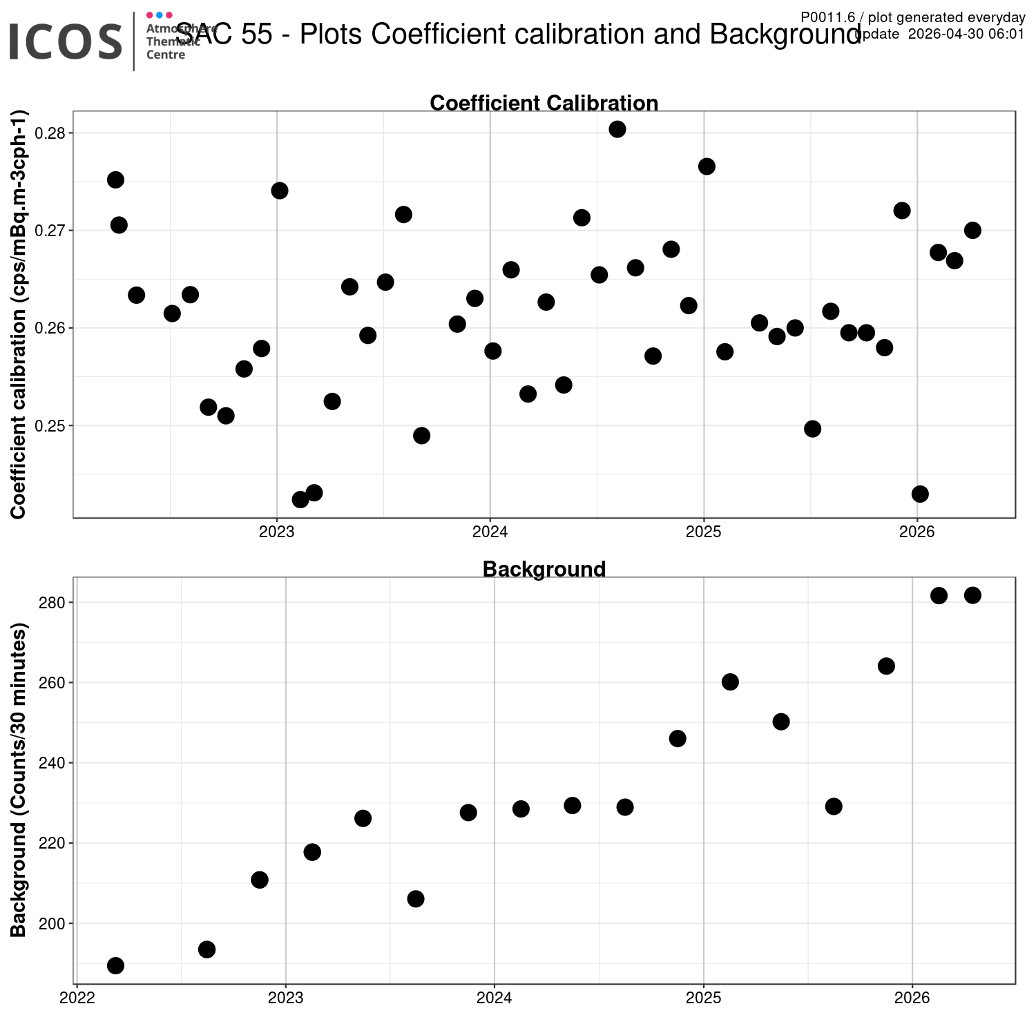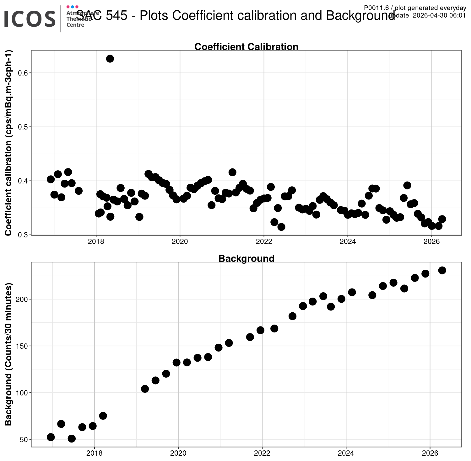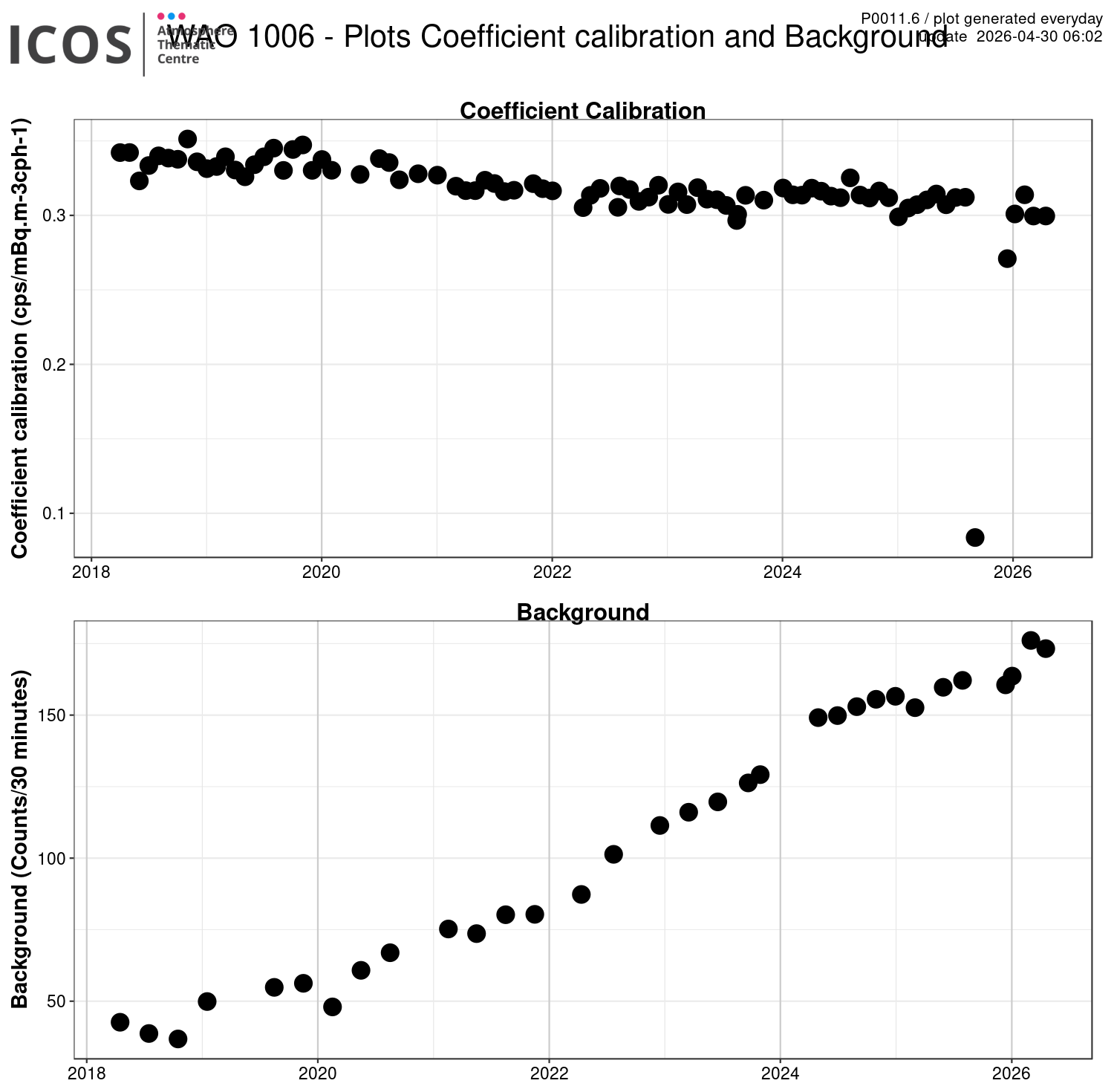 P0011.6 show the calibration coefficient and background for the ANSTO radon over the whole period.